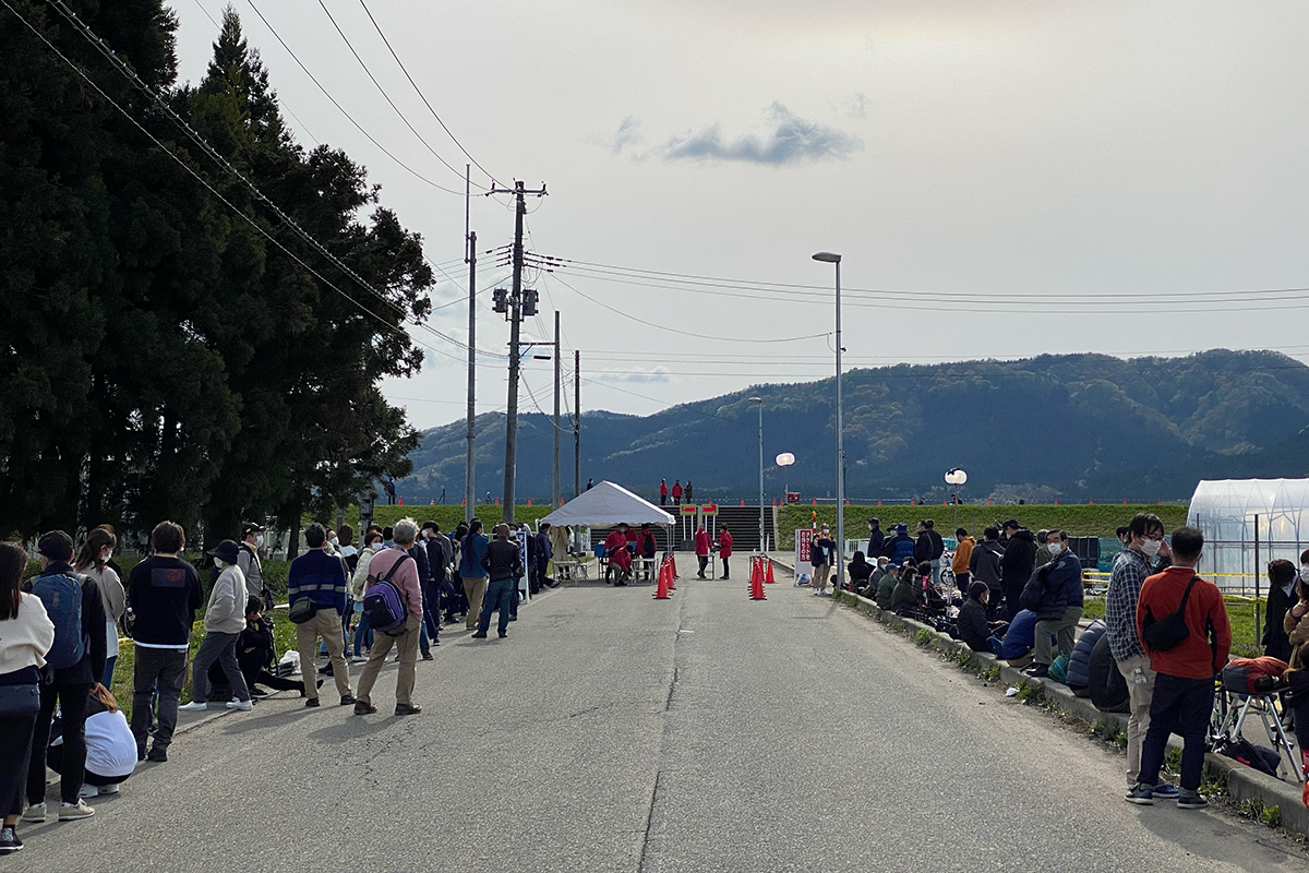 春の章としては3年ぶりの開催かつ特別プログラムでの花火披露、さらには天候に恵まれたのもあってか、開場前から長蛇の列が…。