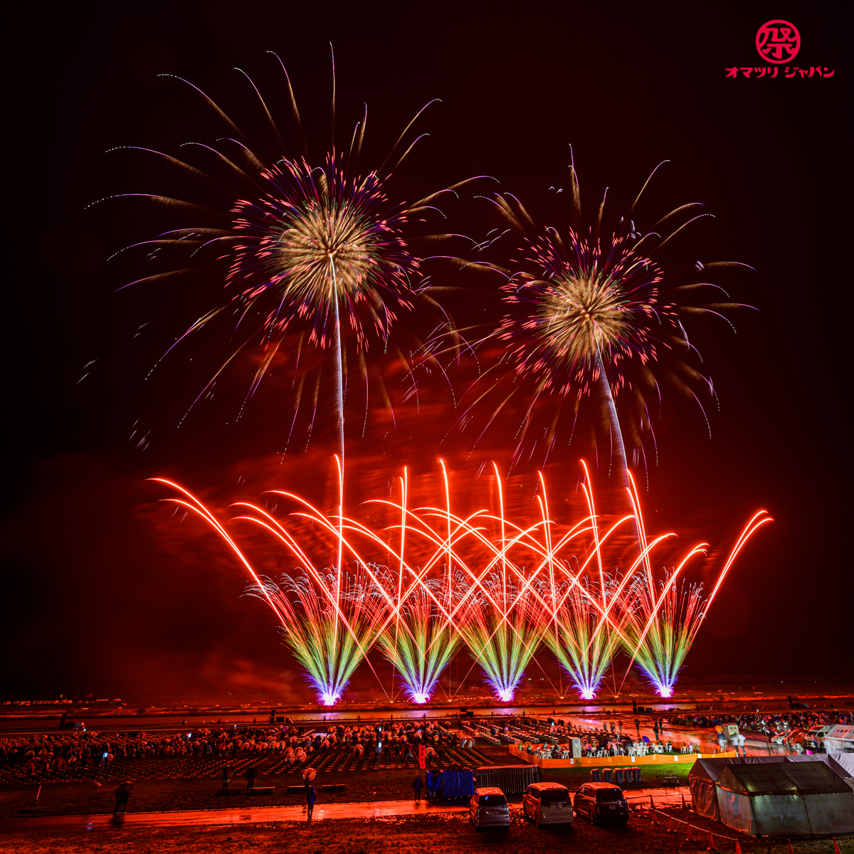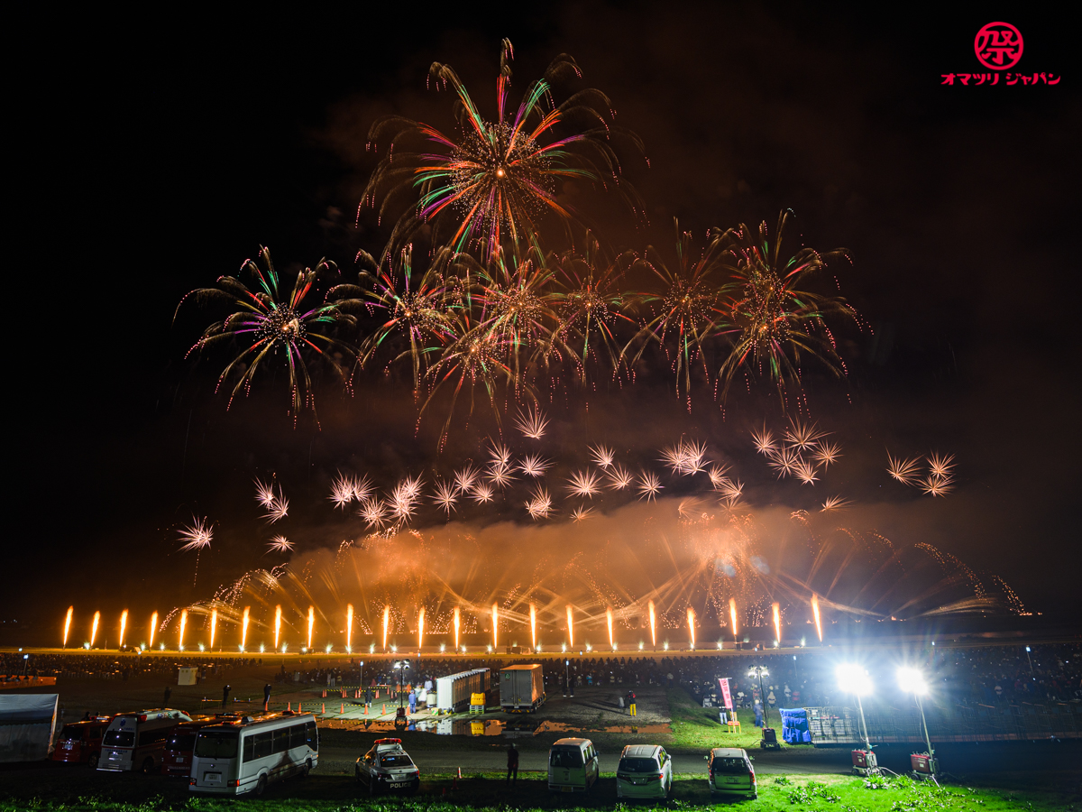 ちなみに同日に開催された三陸花火大会(岩手県陸前高田市)でも同じ楽曲を用いたスターマインがプログラムの初っ端に披露され、奇しくも東北地方の隣県でバチバチに競演する形にw