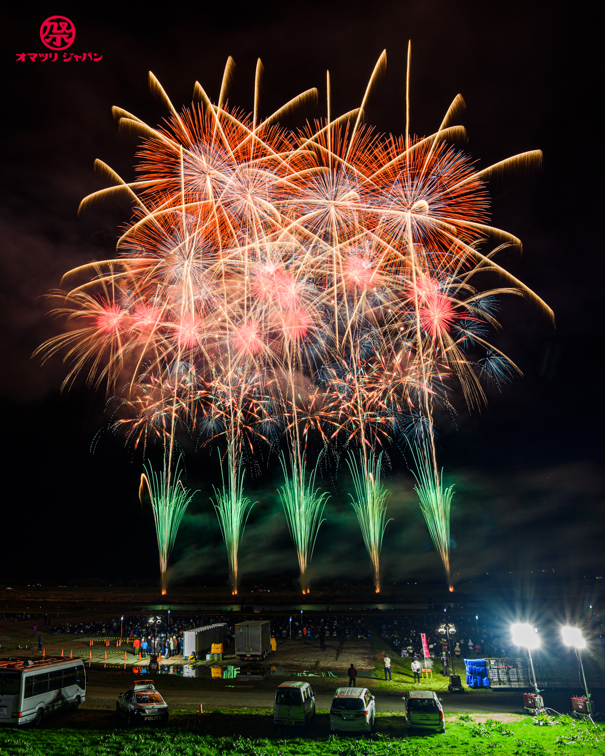 大曲の花火が公に行われたのはおよそ1年ぶりのことで、「再始動」を祈念すべく2つの大会(新作花火コレクション、春の章)が連日に渡って行われました。