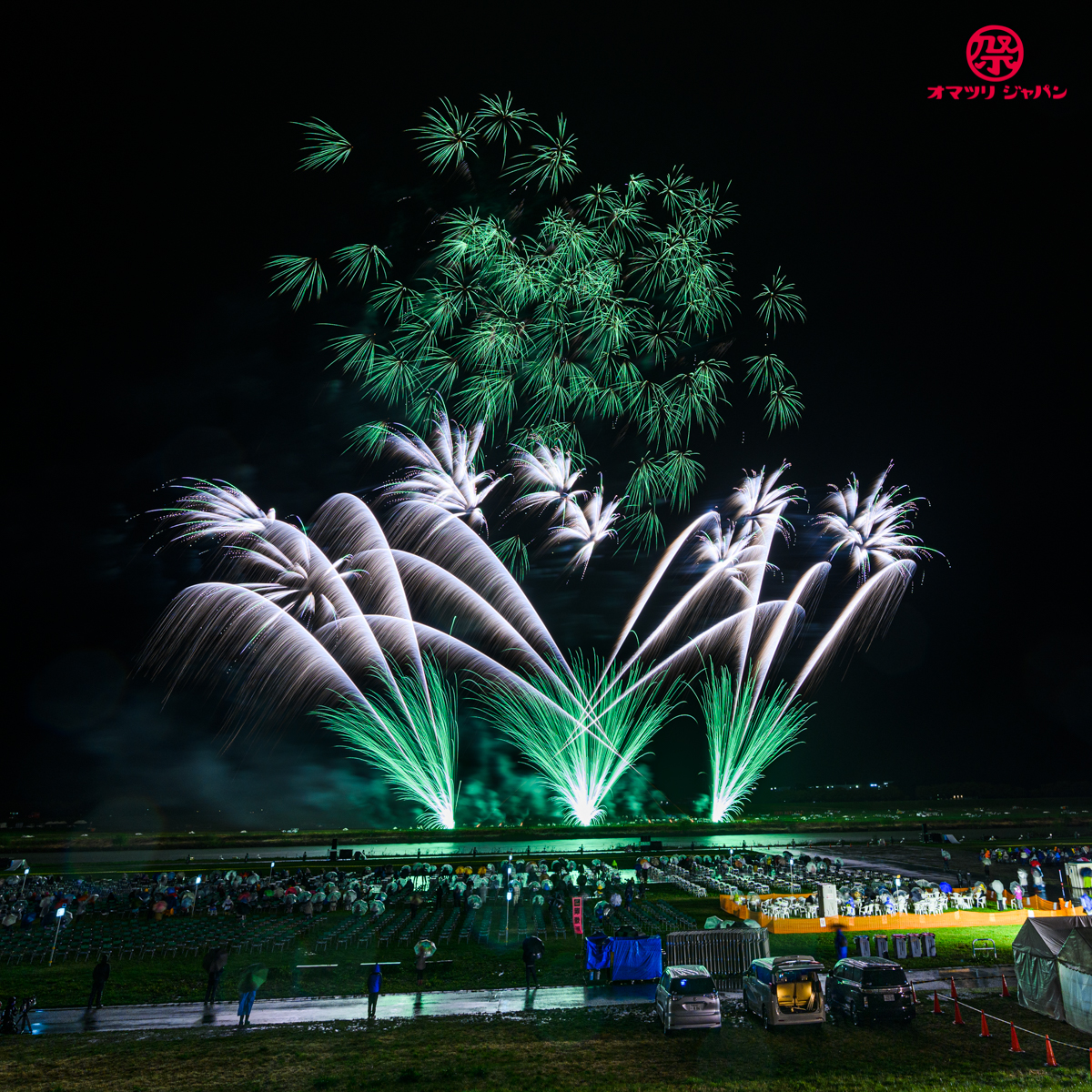冷たい雨が降る中での開催となりましたが、各社の若手花火師さんたちが手掛けた作品群が”聖地”を美しく彩りました。