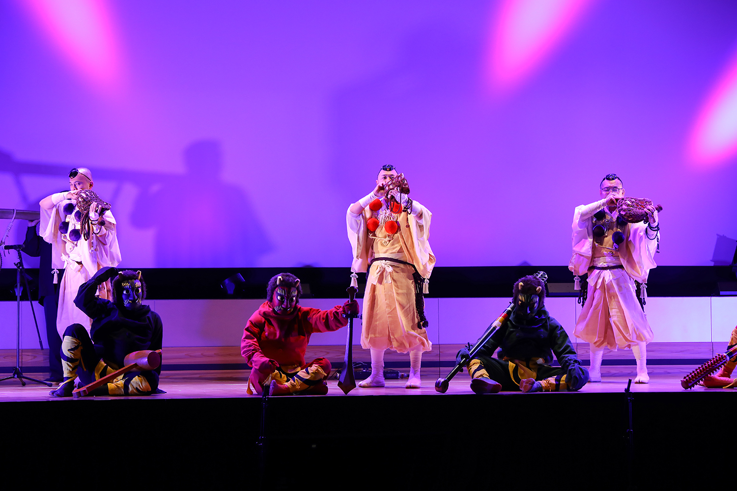 まずは鈴と御幣(ごへい)で場を祓い清め、鈴で福を招く曲からはじまります。