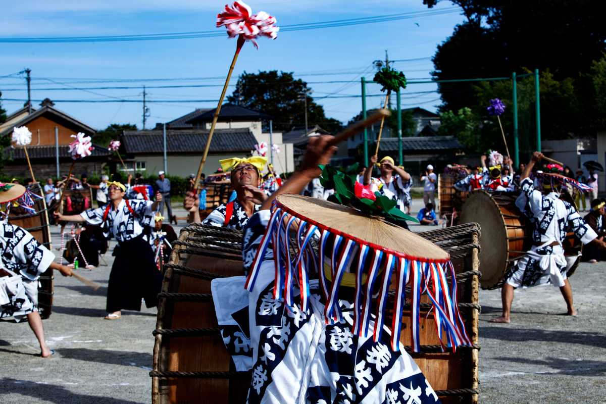 響き渡る太鼓の重い音、軽快なリズムを刻む鉦の音、派手な動きで音頭を取る采振り、全てに一体感がありました。秋と言っても日差しの強い当日、集中力を絶やさず踊り続ける姿に感動し、この日を大切に踊りついできた強い思いを身にしみて感じました。