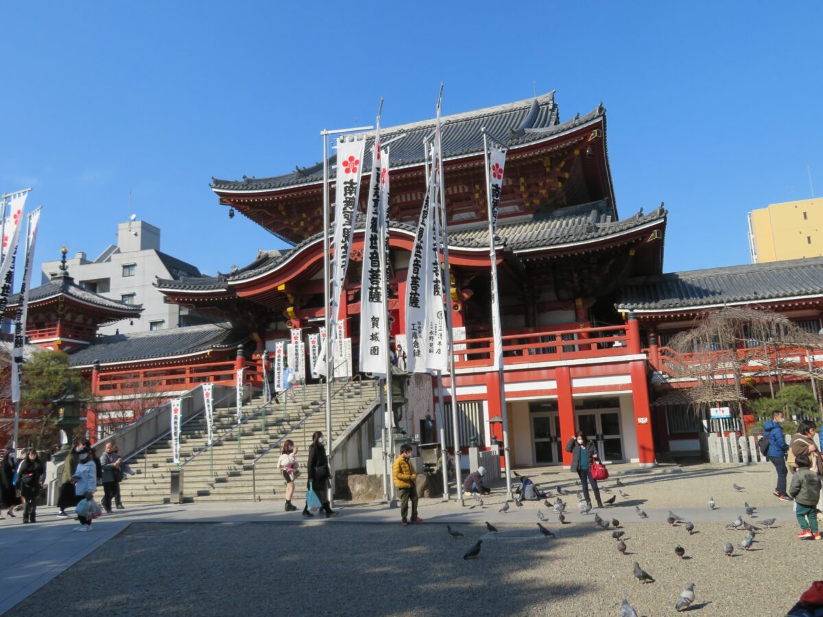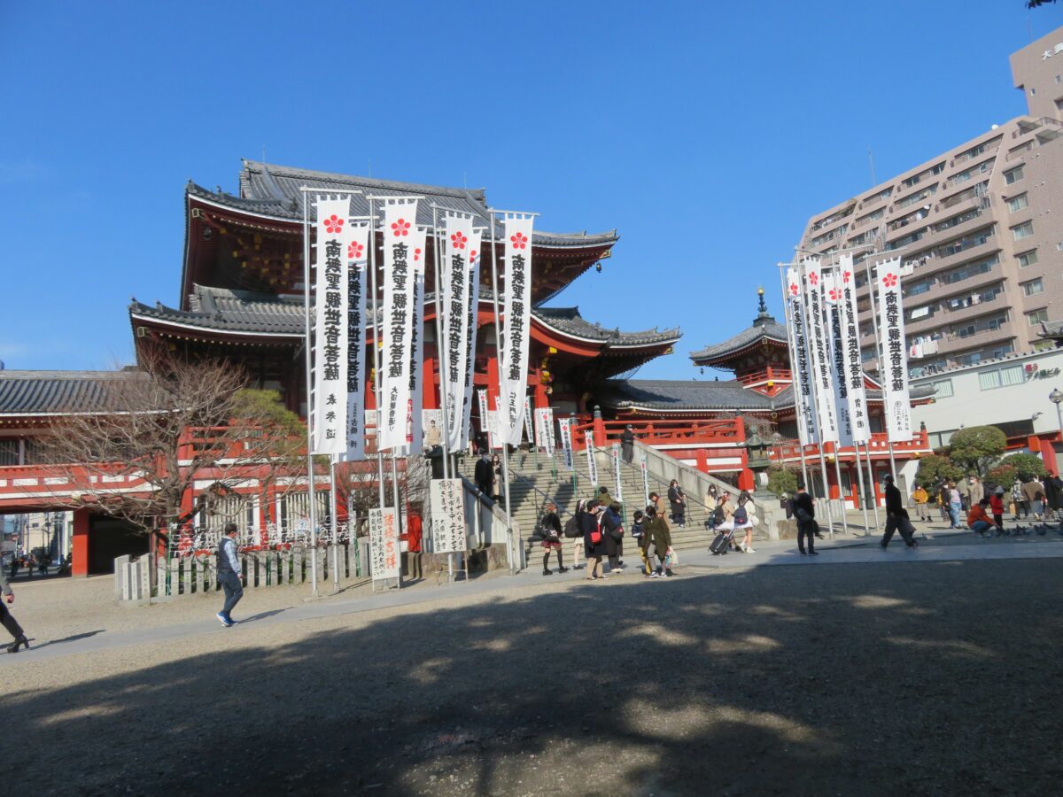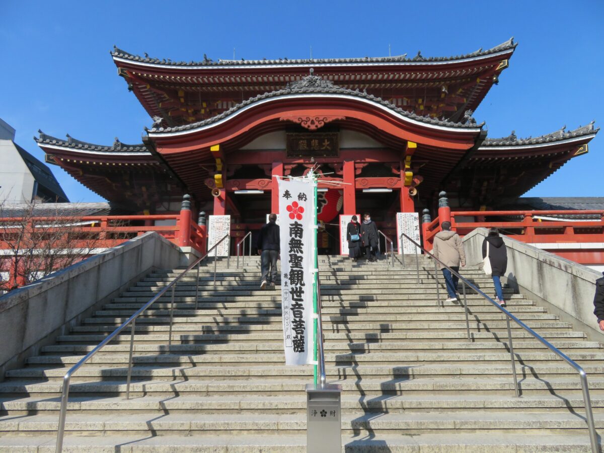 大須観音は、12世紀に岐阜県羽島市に建立された中島観音が起源と伝えられています。戦国時代には織田信長が手厚く保護し、1612年には名古屋を整備する徳川家康によって現在の地に移されました。北野山真福寺宝生院を寺号とし、浅草観音、津観音とともに日本三大観音の一つに数えられています。ご本尊の聖観音を奉る「大悲殿」の本堂は、創建後2度の火災に見舞われ、1970年に再建されたものです。