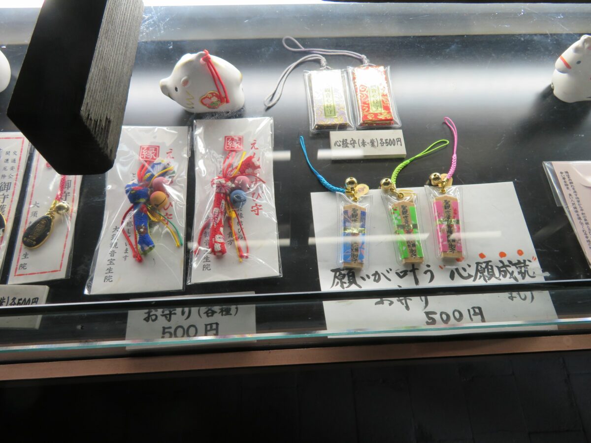お守りなどの授与品は、本堂内の授与所に並んでいます。