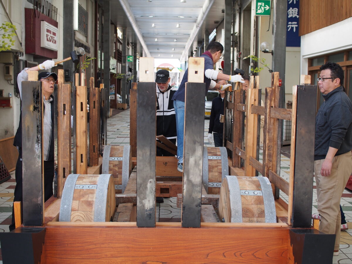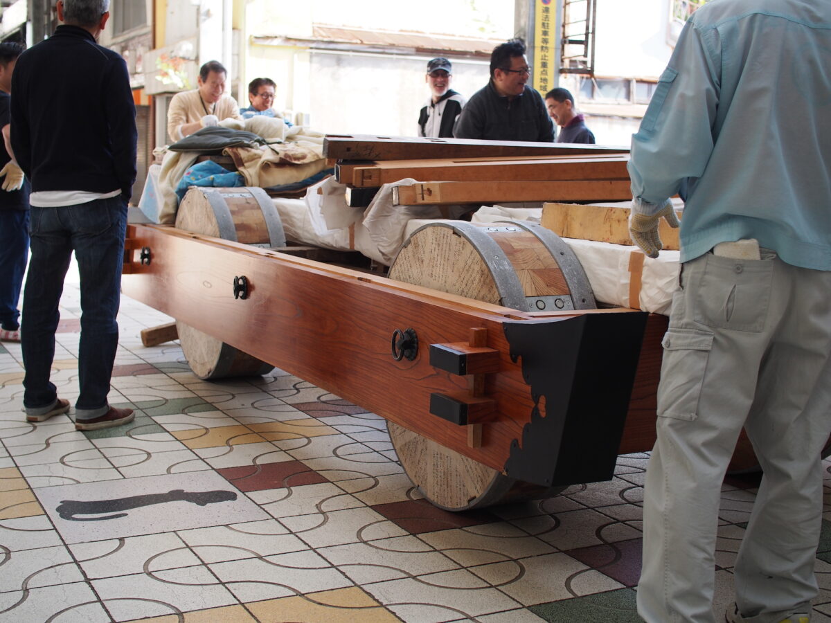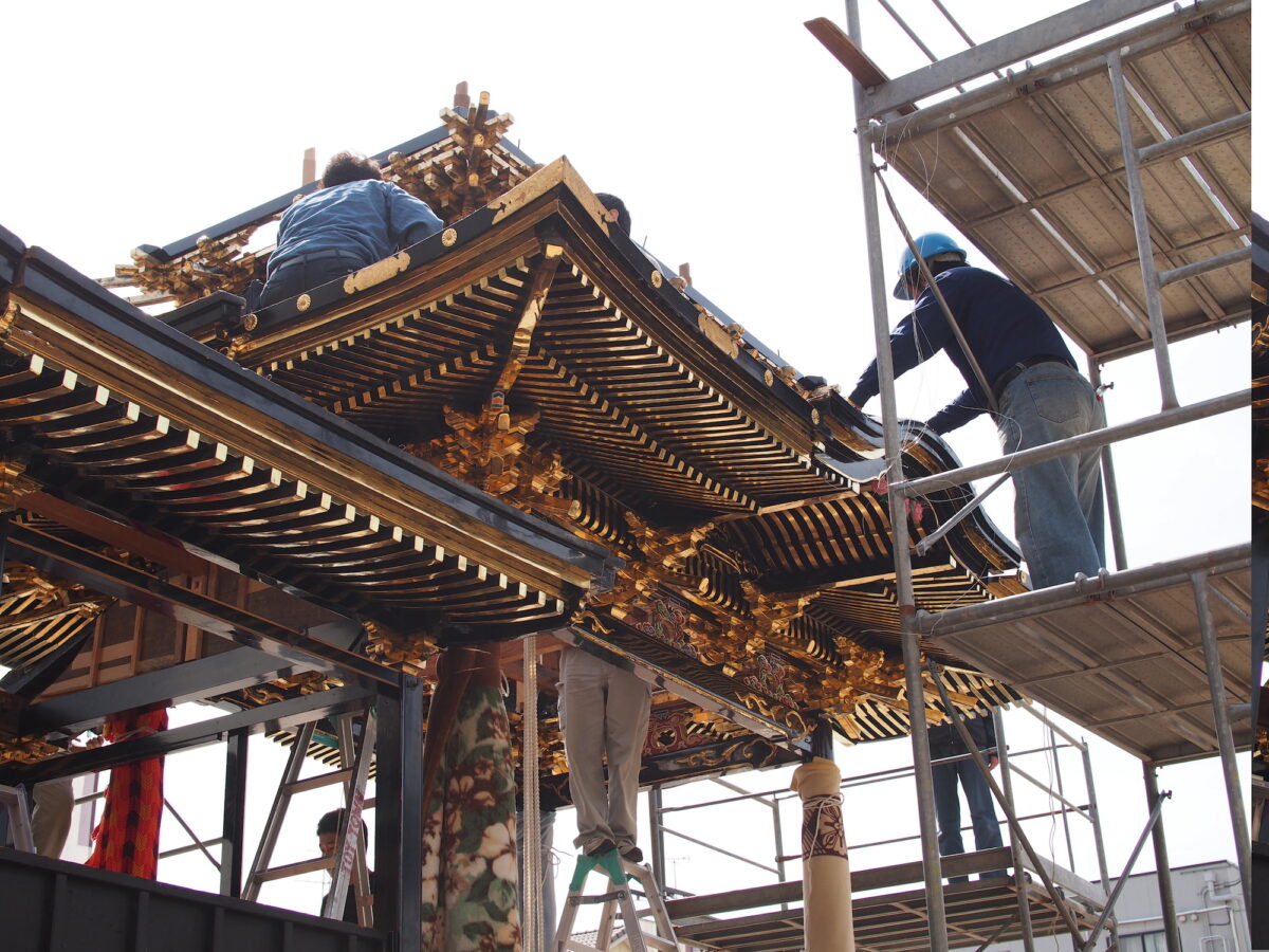 また、毎年バラしては組み直すことができる曳山の組み立ても始まっています。