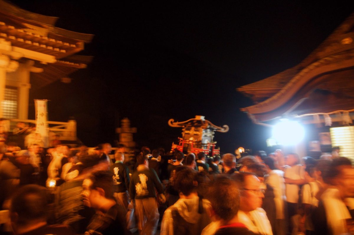 安置前には拝殿前で最後の見せ場で、練りが数回見れるので、最後まで見るのがオススメです。お手火の御神火を移して家に持ち帰るといいらしく町内の方々は。大手火に対して小手火(こてび)を持って火を移して帰宅します。