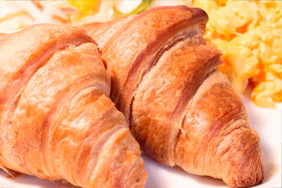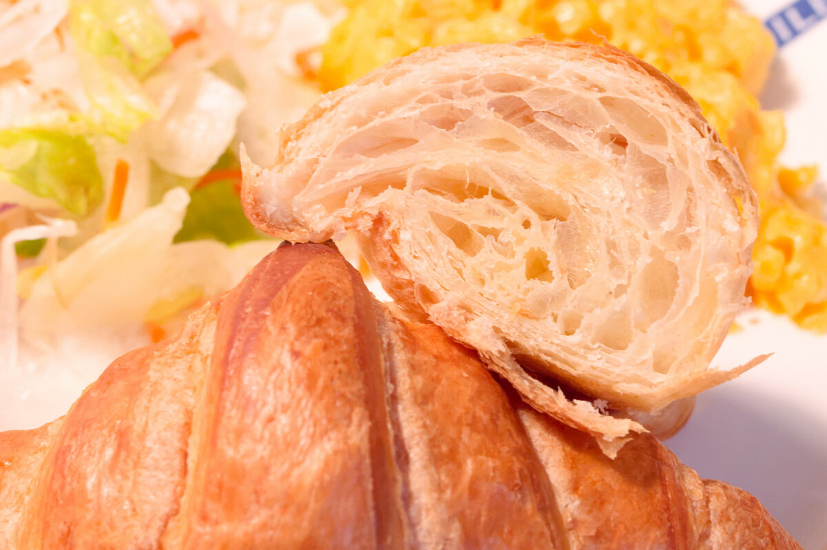 一口かじってみると、何層にも折り重ねている生地はふわふわで柔らかく、バターのコクもしっかり。スクランブルエッグとカフェオレとの組み合わせもバッチリ!