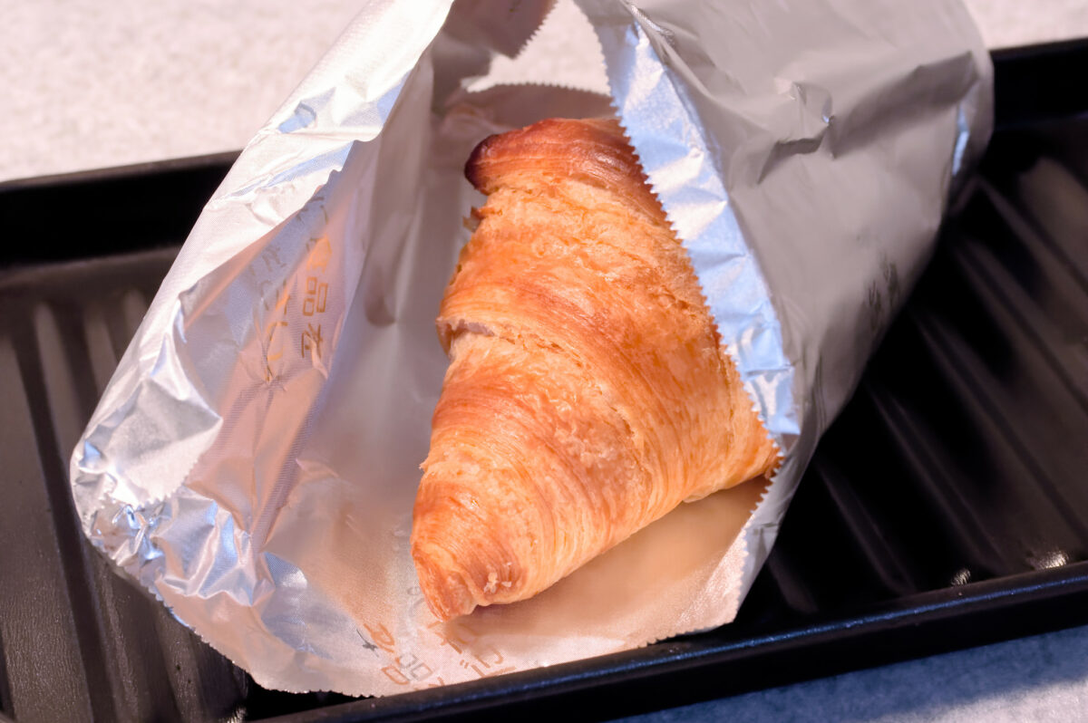 袋を開けるとほんのりとバターのいい香りが……。今回は、朝食で頂きましたが、ミニサイズのクロワッサンのためおやつにもピッタリ。2つでパン屋さんのクロワッサン1つ分くらいの大きさです。