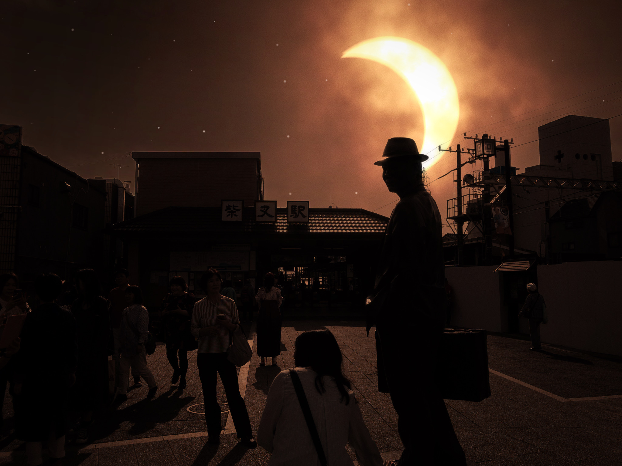 東京スカイツリー前。「幻想的な空」レンズを使用。