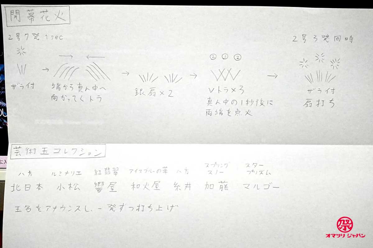 愛木さんが厳選した各社4号玉1発ずつの打ち上げ。
