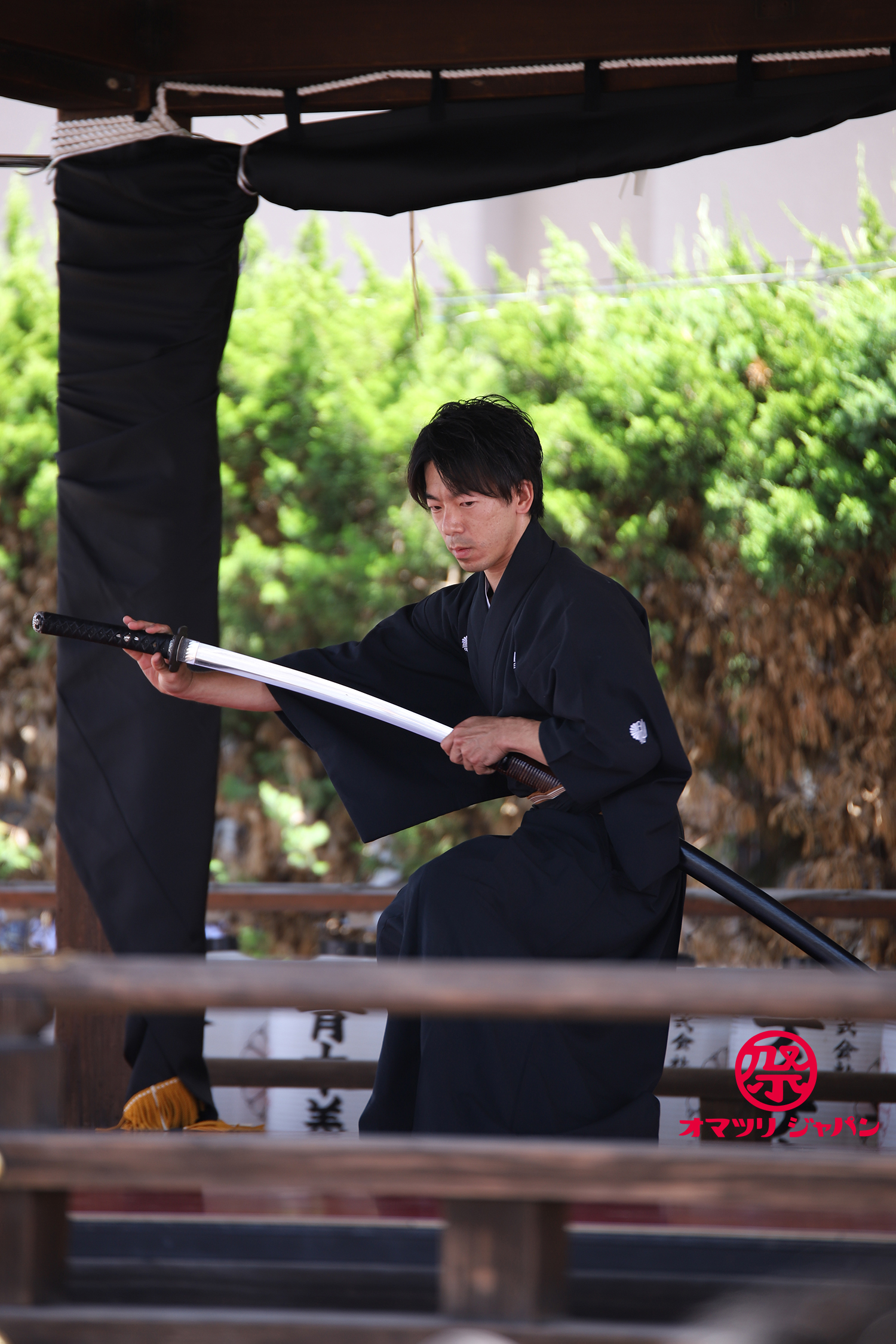 美しい龍の彫刻の下で鋭い真剣を振るう姿が印象的でした。