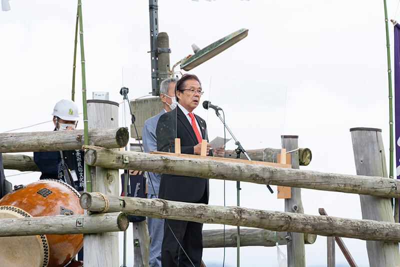 午後の部が始まる前には、口上櫓にて北堀篤秩父市長の挨拶もあり、「来年に向けても龍勢を繋げていく決意でございます」とこれからの抱負を述べていました。