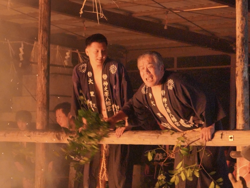 時刻は夜8時過ぎ。ついに町の青年を中心に編成された攻め手が境内へと侵入してきました。紺で統一された着物、男の背中がくぅ眩しい。色気しかない。
