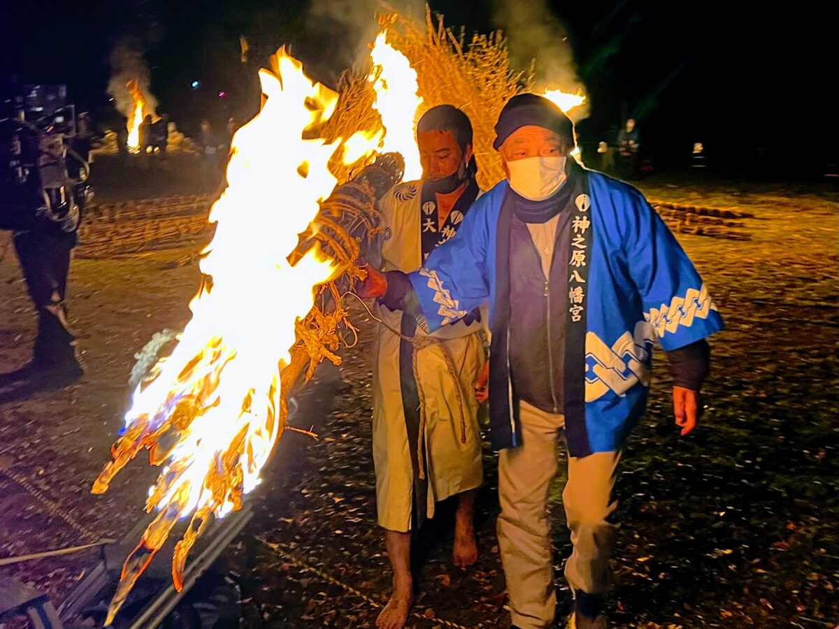 全集中、火の呼吸。佐賀の奇祭、取り追う祭りを見て来たゾ。攻め手と守り手が握り飯の入ったザルを奪い合う。600年以上前の南北朝時代、戦いに敗れた武将が再起を賭けて行った火中訓練が由来とされておる。燃え盛る松明で攻撃を展開する松明合戦が圧巻じゃ。12月最初の卯の日の前夜に開催 pic.twitter.com/qKlAqyp8Gd