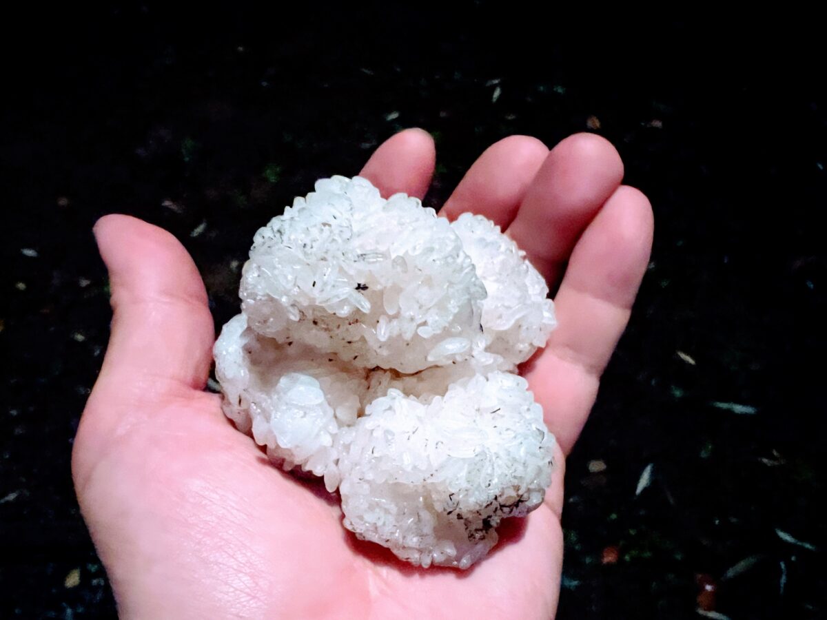 筆者も火中から出てきたおにぎり御供さんをゲット。御供さんとは、穀物に宿るとされる精霊の象徴。祭り当日に握られる御供さんは833個とキッチリ数が決まっていて、一説には宮座の数とも、南北朝の戦で亡くなった兵士の数とも言われているのだとか。ちょっと黒く煤が被っていましたが、男衆たちによる迫力の松明合戦を見た直後に食べる男飯は何だかエモかったです。精霊を体に取り込み、はるばる佐賀まで来た甲斐があったぜ。