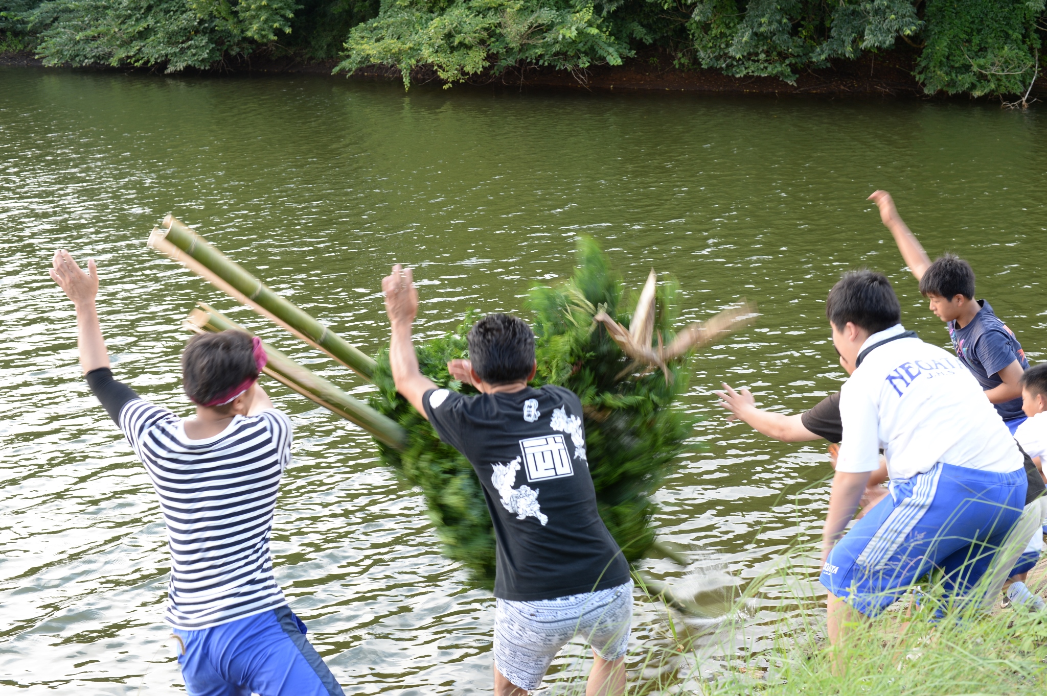 最後に神輿を野田堰に投げ入れて終わる。 提供:袖ケ浦市教育委員会