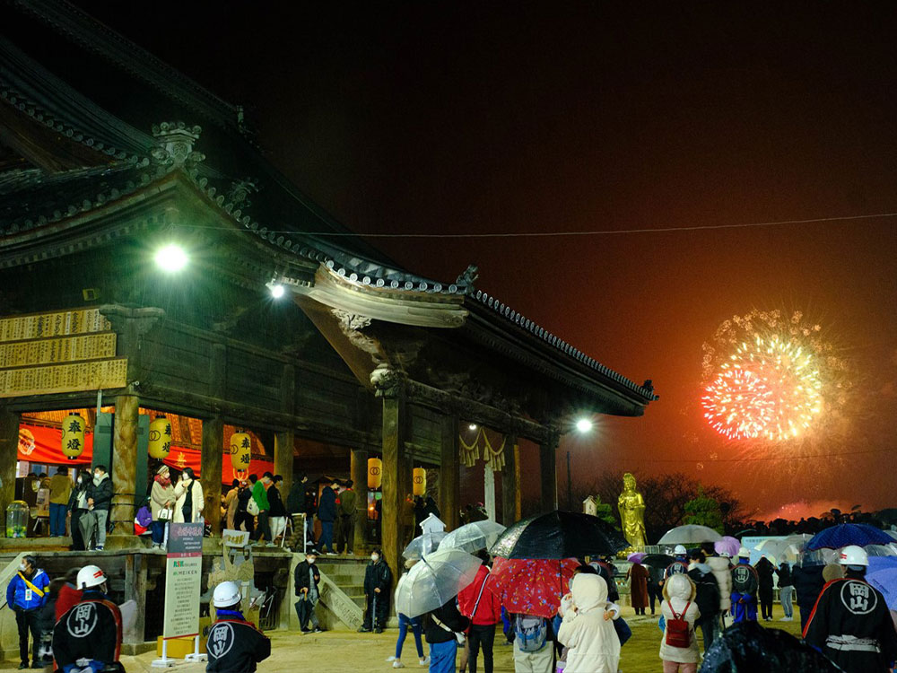 さらに冬の夜空には鮮やかな花火が打ち上げられ、お祭りムードは早くも最高潮に達します。