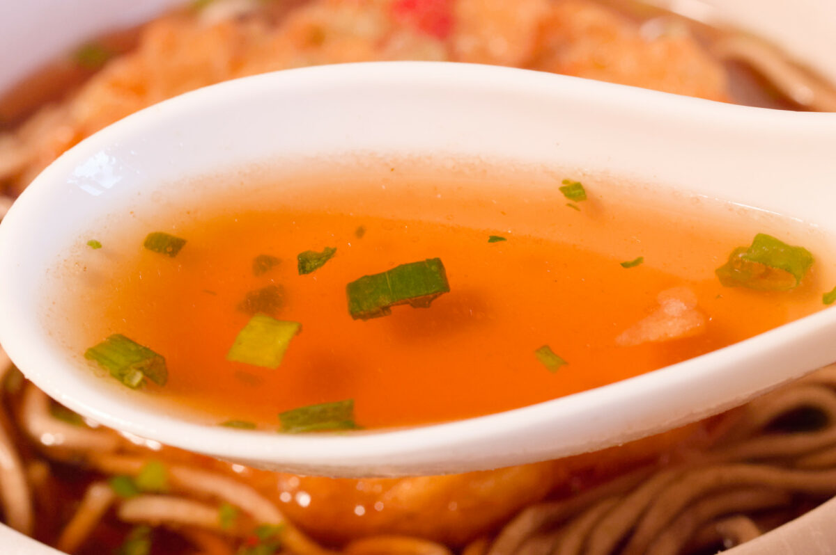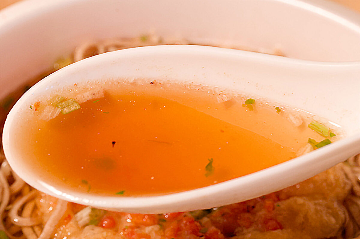 鰹の豊かな香りと、しょうゆの旨みを利かせたスープ。コクのある鰹の風味をダイレクトに感じます。