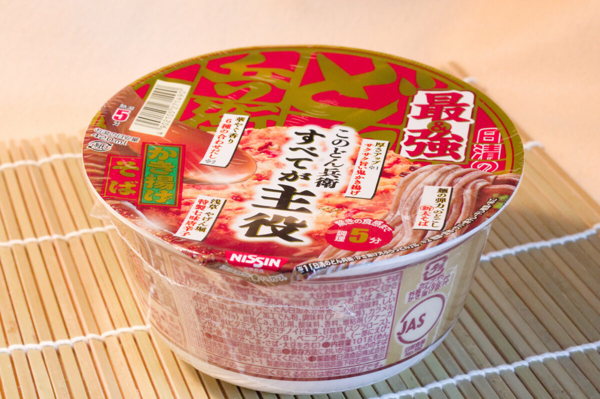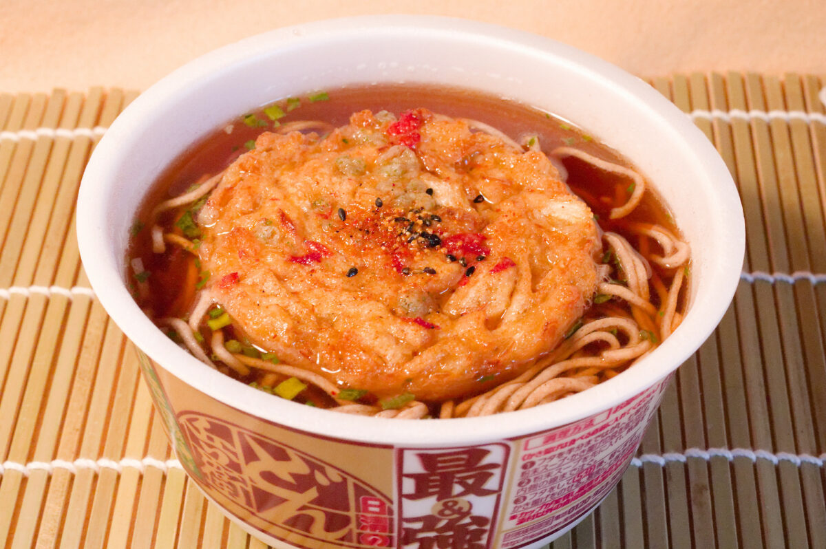 すでにご存じの読者も多いかと思いますが、「日清の最強どん兵衛 かき揚げそば」とは、今年の3月28日に発売された「どん兵衛」の高級版。麺や出汁、かき揚げ、七味唐辛子にいたるまで、とことんこだわり抜いた和風カップ麺の最高峰ともいえる一品。「スーパーで見かけて気にはなっているけど……」という読者の参考になればと考え、オマツリジャパン公認ライターで一番の食いしん坊が「通常版どん兵衛」と「最強どん兵衛」の違いをとことんレポートします。