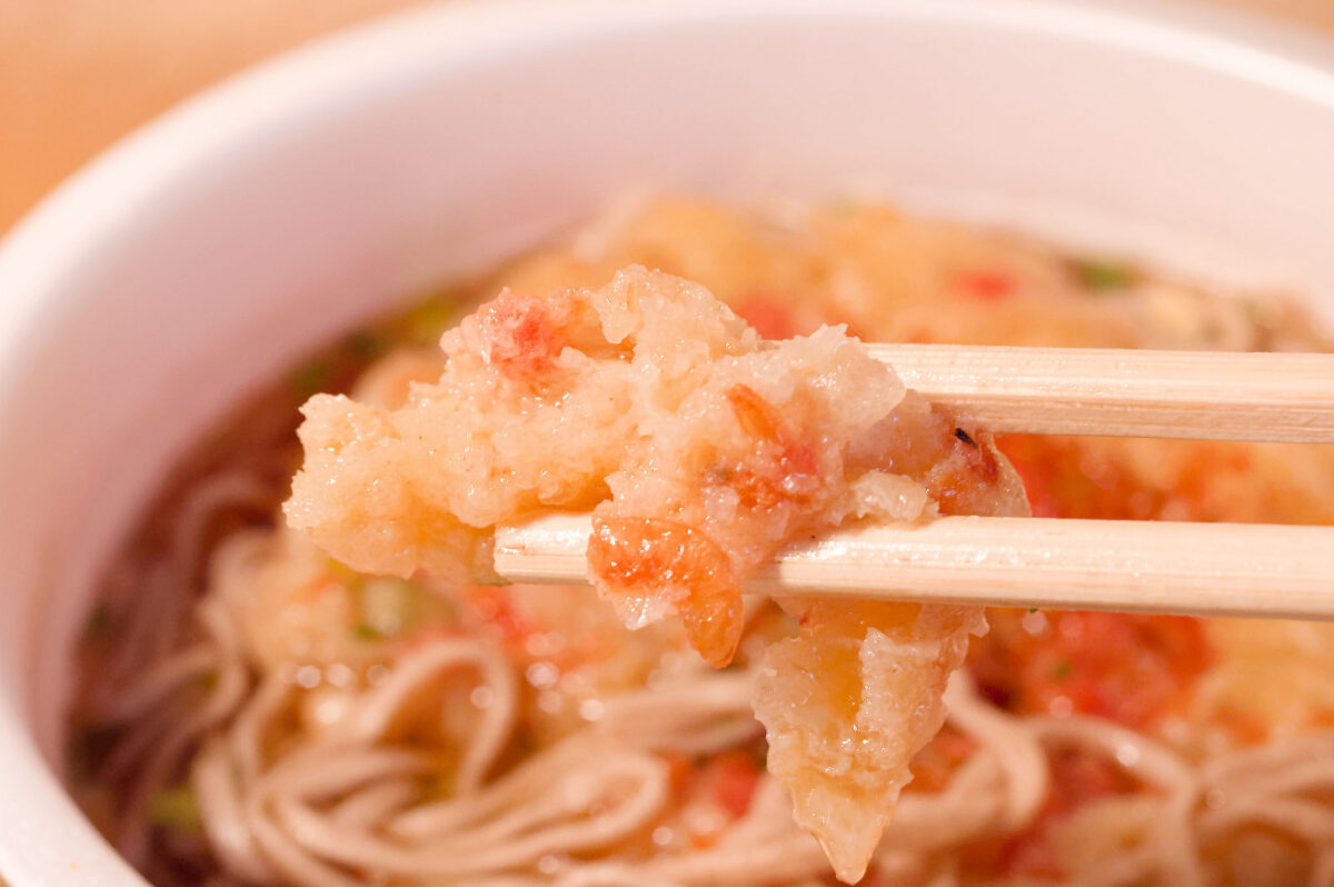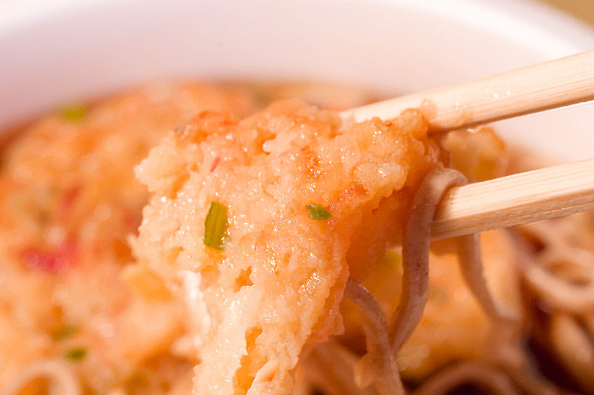 最強版のかき揚げは見た目だけでなく、お味もほうも別格。エビの香りもうるさくなく、たまねぎの甘みが生きたビックリするくらいの美味しさ。200円越しのやや高めのカップ麺ですが、このかき揚げのクオリティなら大満足!