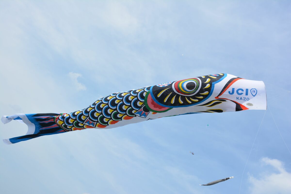 埼玉県北東部の加須市の利根川流域には、水の恵みを活かした田園地帯が広がります。河川敷の緑地公園には遊歩道が整備されており、毎年5月3日には上空を巨大なこいのぼりが遊泳します。「加須市民平和祭」の最大イベントとして、全長100メートルのジャンボこいのぼりが、クレーンで大空に釣り上げられるのです。他にもゴールデンウィーク前後には市内に社殿を構える玉敷神社の境内の藤が花を咲かせ、「加須市騎西藤まつり」が開催されます。神社の神楽殿で春夏秋冬の大祭のときに奉納される「玉敷神社神楽」も極めて興味深いイベントです。
