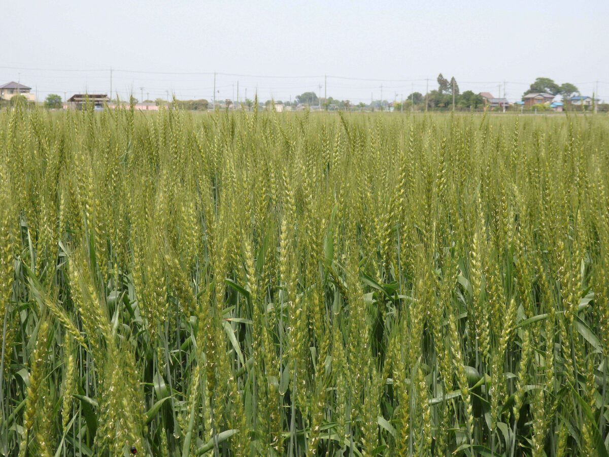 加須市の利根川流域に広がる麦畑