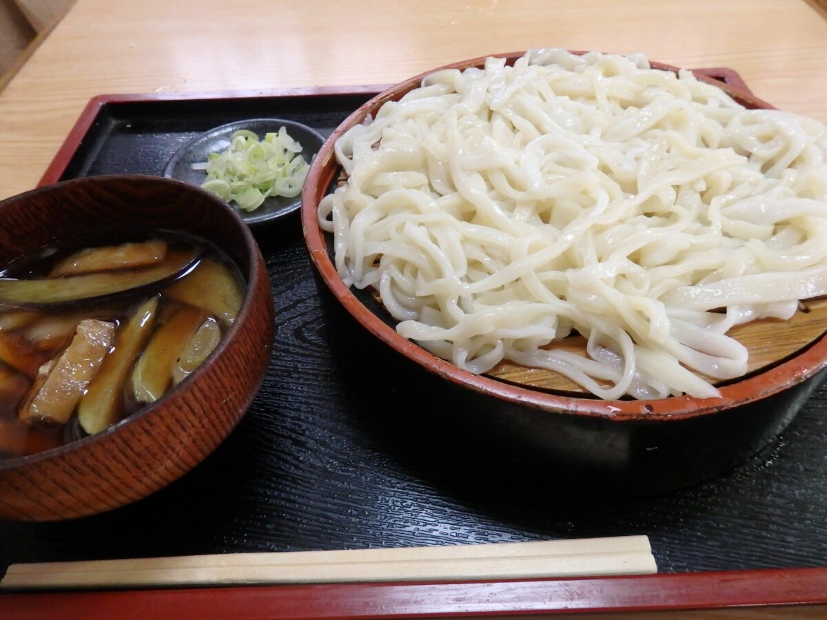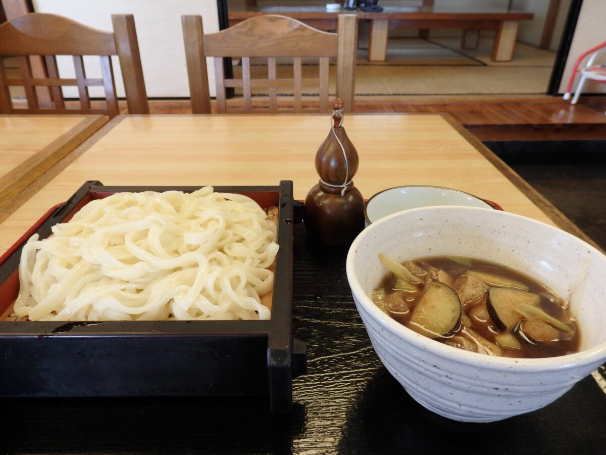 手打うどん自体のコシの強さや、のど越しのよさを楽しむにはシンプルなメニューがいいかもしれませんが、地元の人々の人気で各店舗が味を競い合っているのは「なす南蛮うどん」でしょう。手打うどんを油炒めの茄子とねぎ入りの温かいつゆにつけて麺を食べます。「冷汁うどん」に天ぷらが添えられた「野菜天うどん」では、うどんの味わいにサクサク感が加わります。