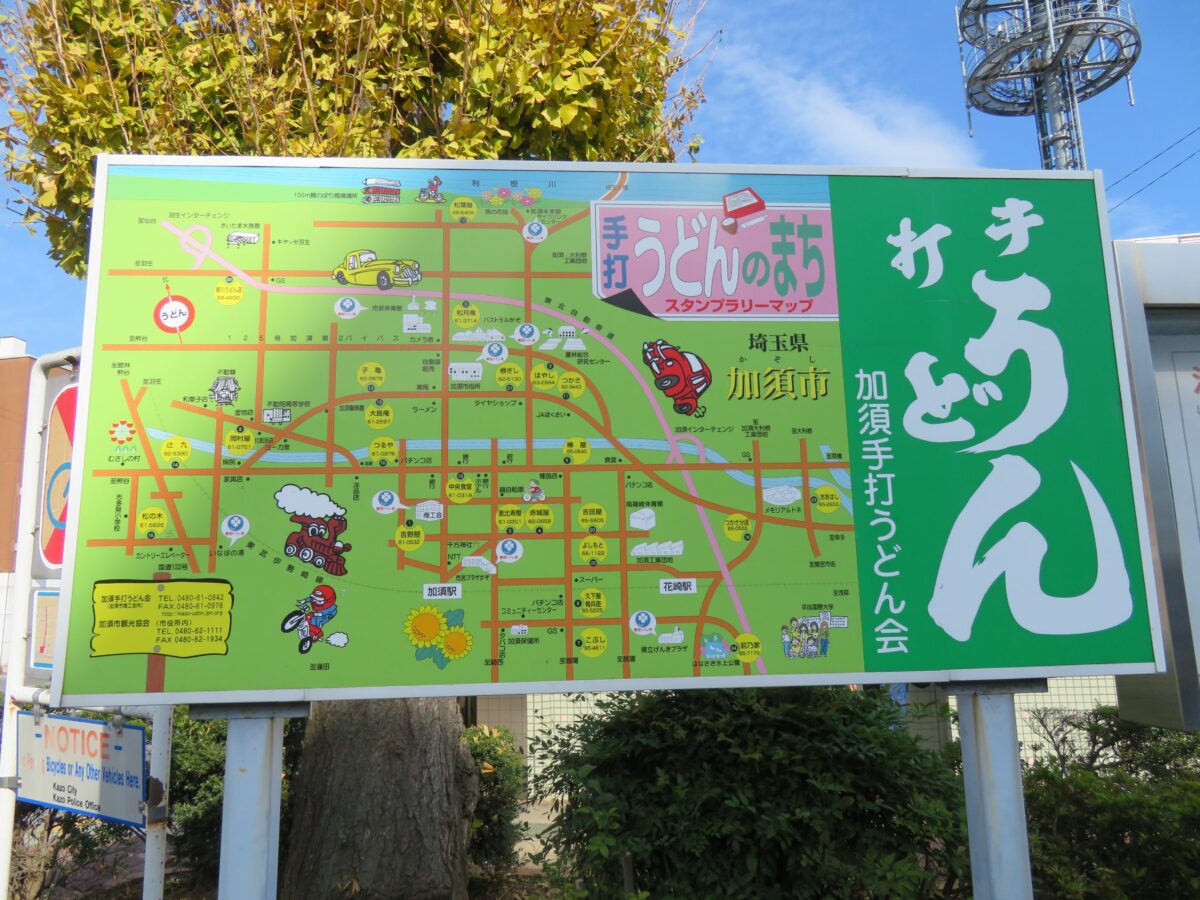 東武伊勢崎線の加須駅の正面の「手打ちうどんのまち」の掲示