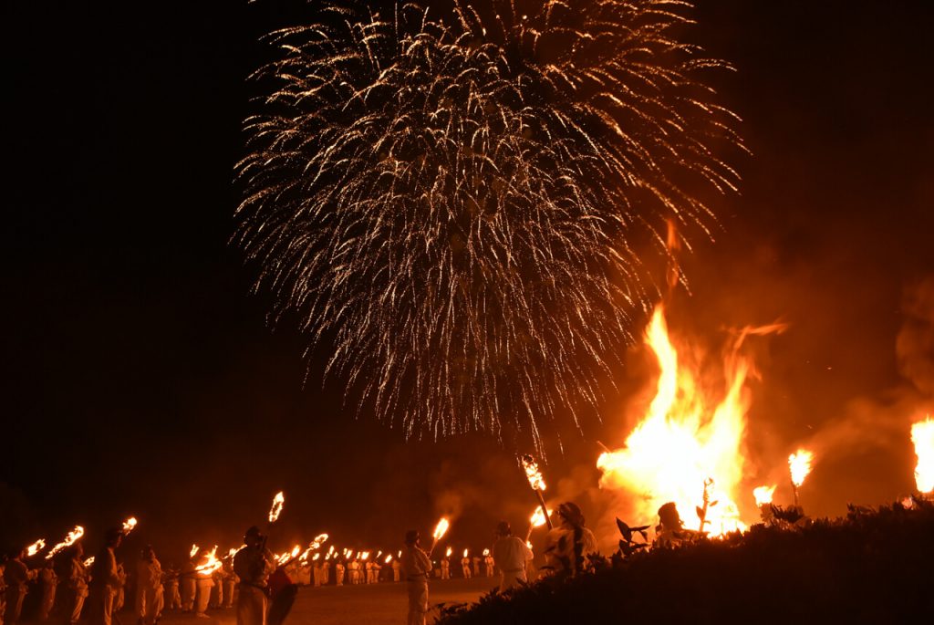 また、縄文時代を彷彿とさせる古代衣装のコスプレに身を包んだ約300人が松明を持って大行列を行います。松明は、灯油をしっかりと染み込ませた綿を使うことで、長時間持ち続けても火玉が落ちないように工夫しているのだとか。神話をモチーフにしたオマツリというのは全国的にもめずらしいので、これはなかなかの「きさいたま」。フィナーレを飾る打ち上げ花火(スターマイン)は高度が低く、すぐ頭の上で花開く点も珍しいです。