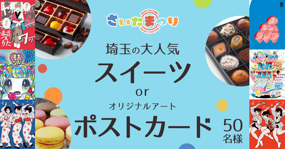今回のキャンペーンでは埼玉の大人気スイーツのほかにも「お祭り × アート」のスペシャルグッズが当たる!