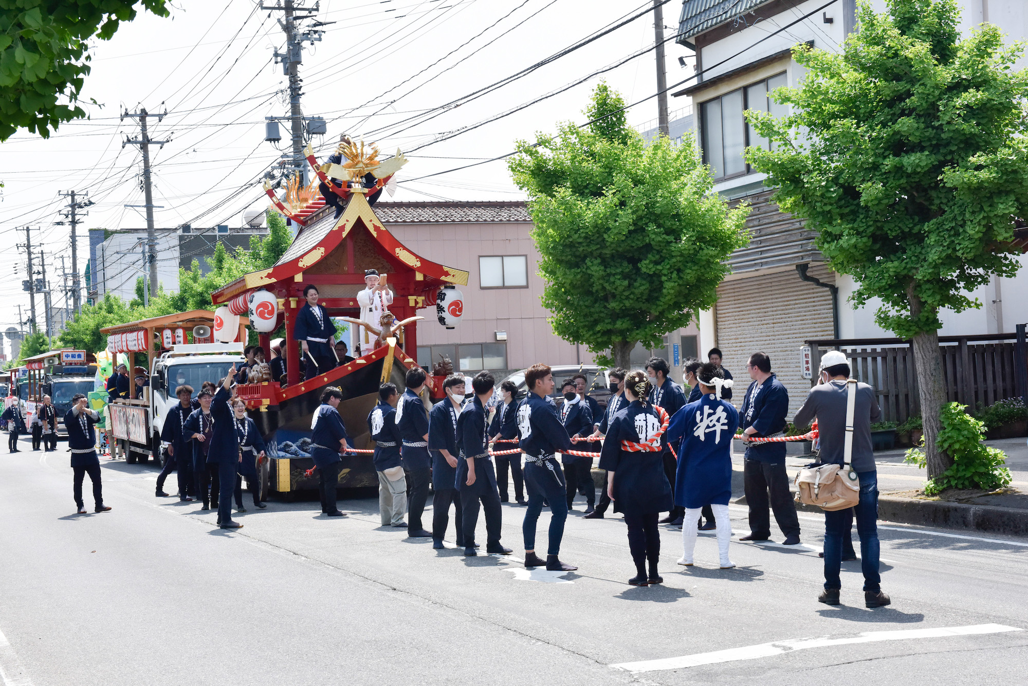 まずは北前船を模した「日吉丸」の登場だ。太鼓を叩く人、笛を吹く人、山車を曳く人…。1つの山車だけでも、本当に様々な人が関わっている。