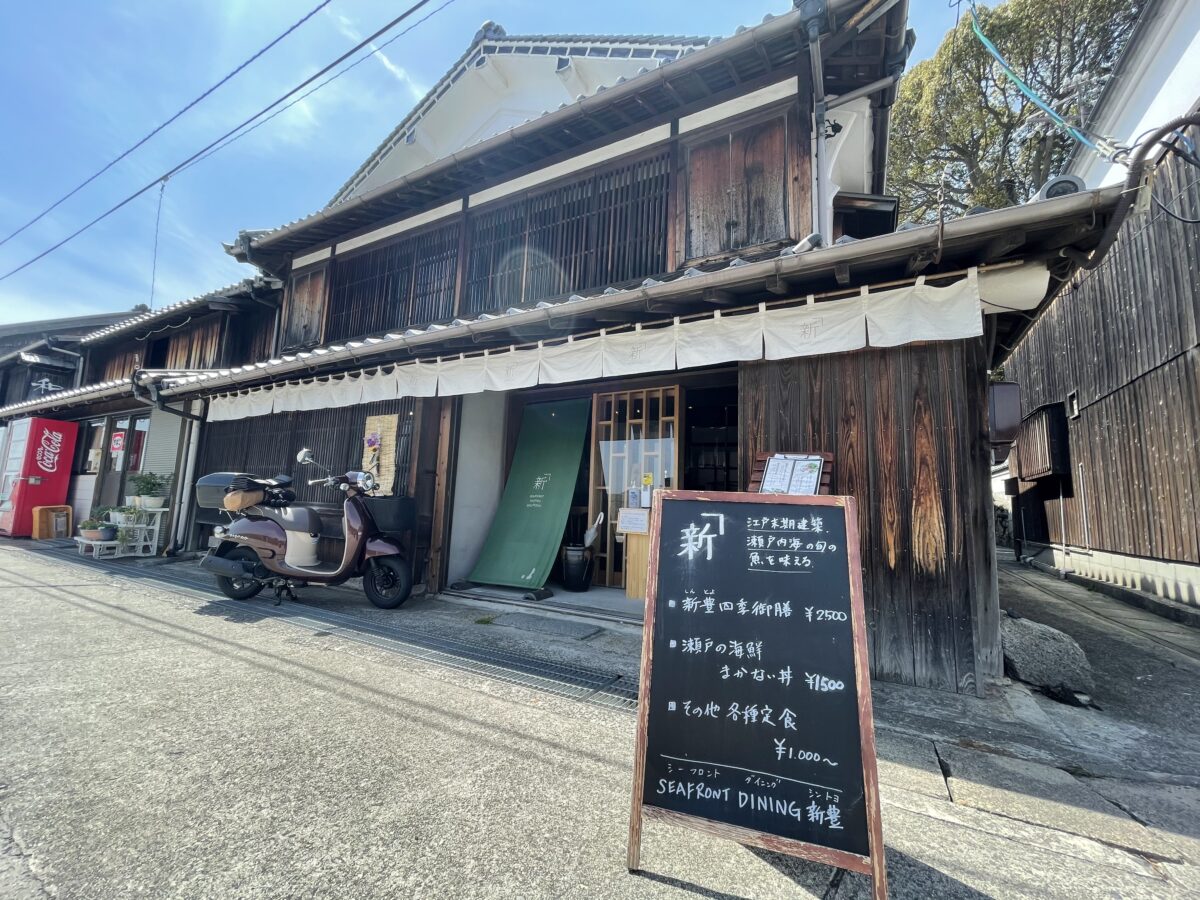 古い町並みを散策しているとお腹もすいてきます。せっかくなので、江戸時代末期に建てられた旅館をリノベーションしたレストラン「シーフロントダイニング新豊」。こちらは、旅館へお泊りされている方のお食事処で、一般向けは土日祝日のみという、とってもレアなお店です。