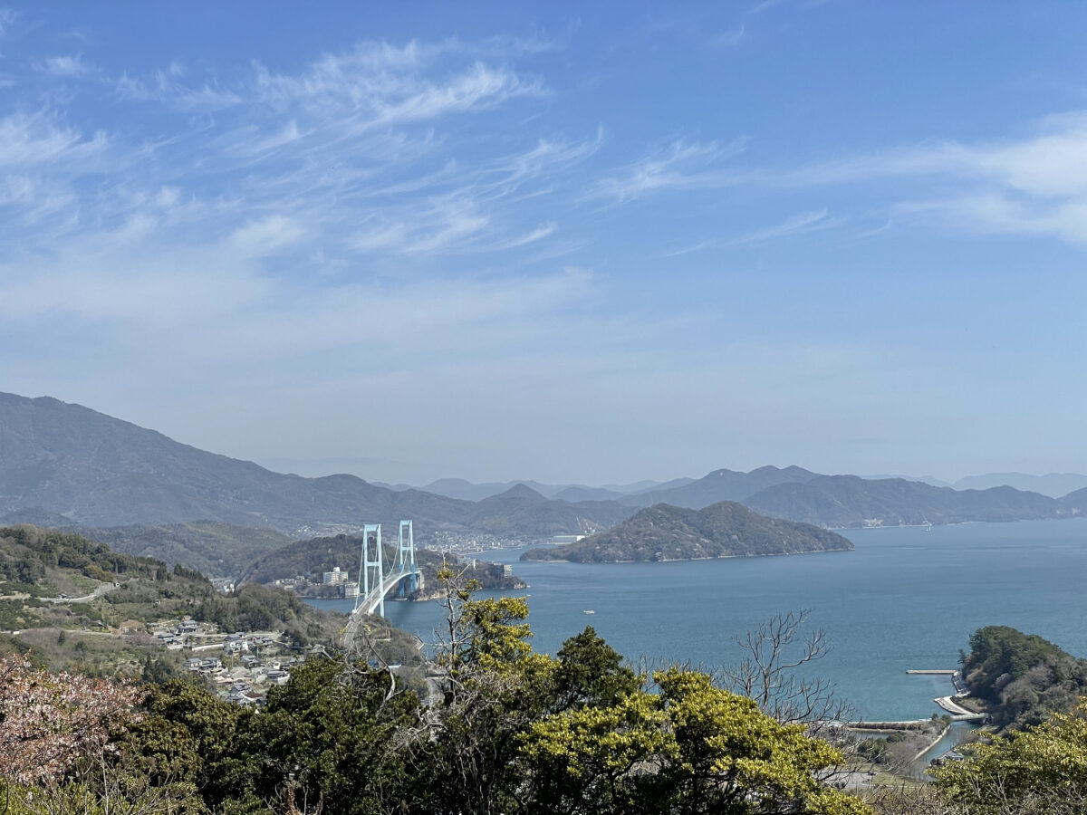 まず向かったのが、とびしま海道最初の島、下蒲刈島にある「大平山展望公園」。とびしま海道の島々と瀬戸内海の海が眺められる公園です。この時期は、桜の花が咲き誇ります。