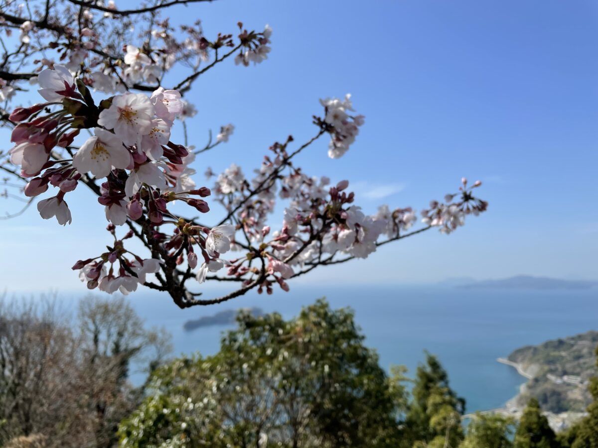 まず向かったのが、とびしま海道最初の島、下蒲刈島にある「大平山展望公園」。とびしま海道の島々と瀬戸内海の海が眺められる公園です。この時期は、桜の花が咲き誇ります。