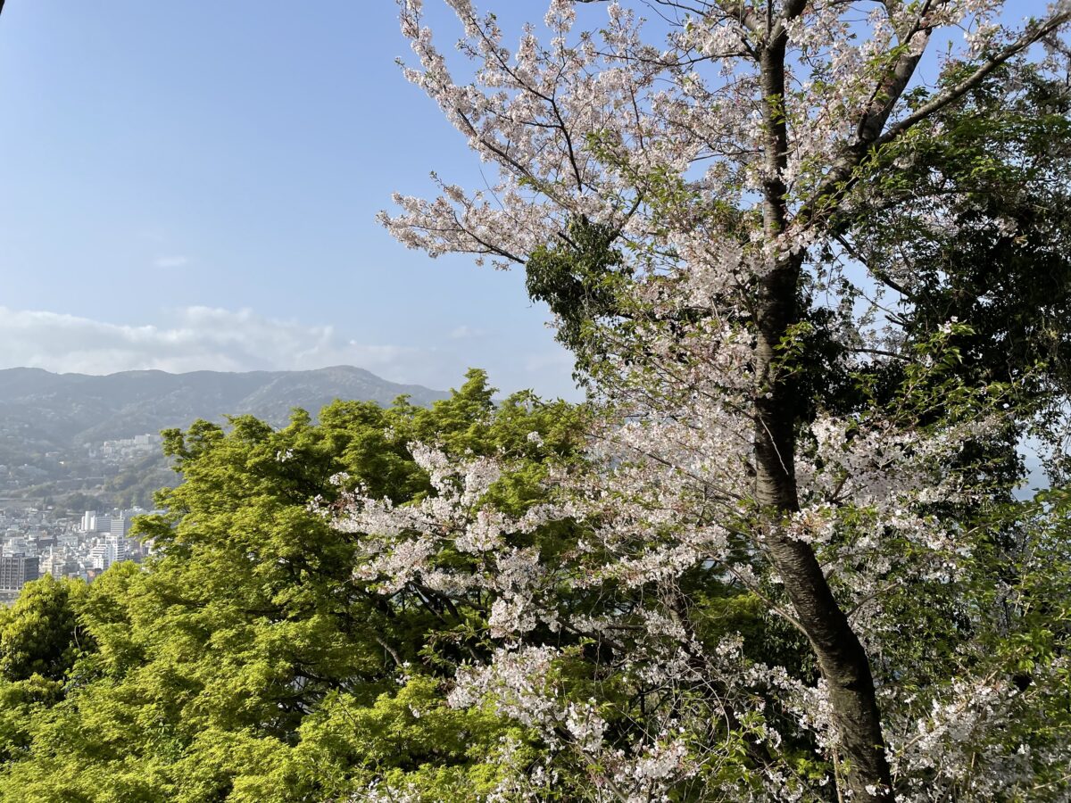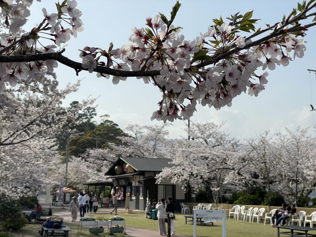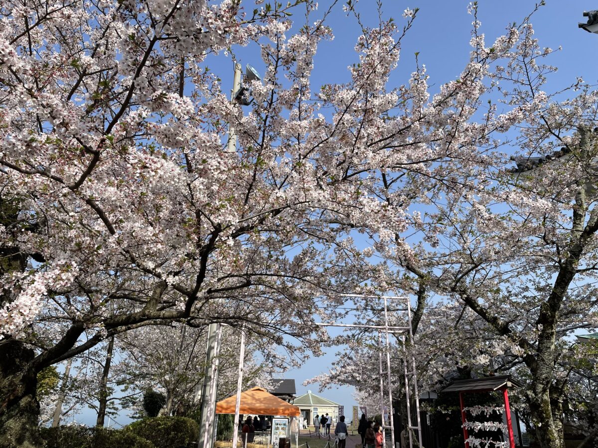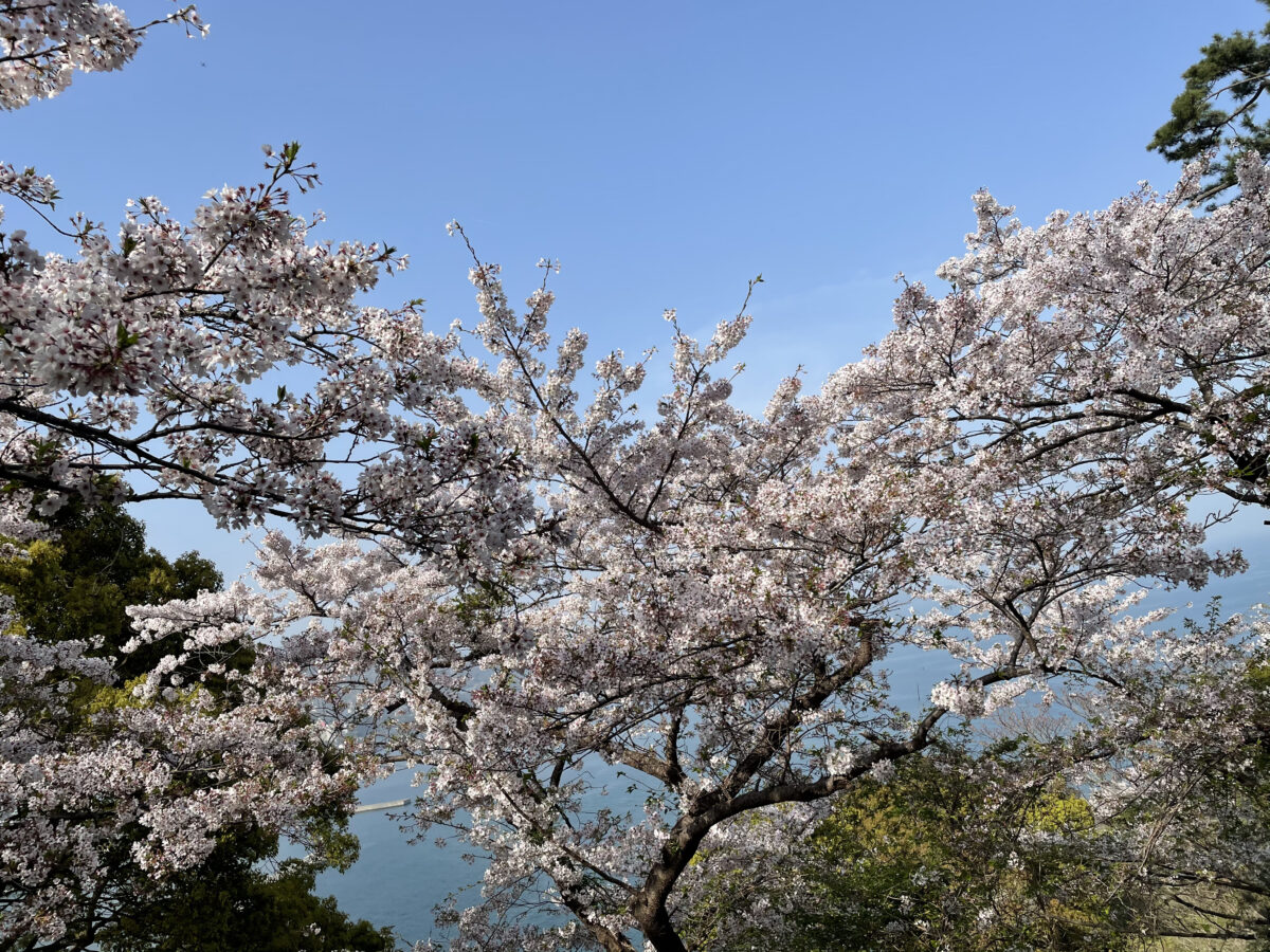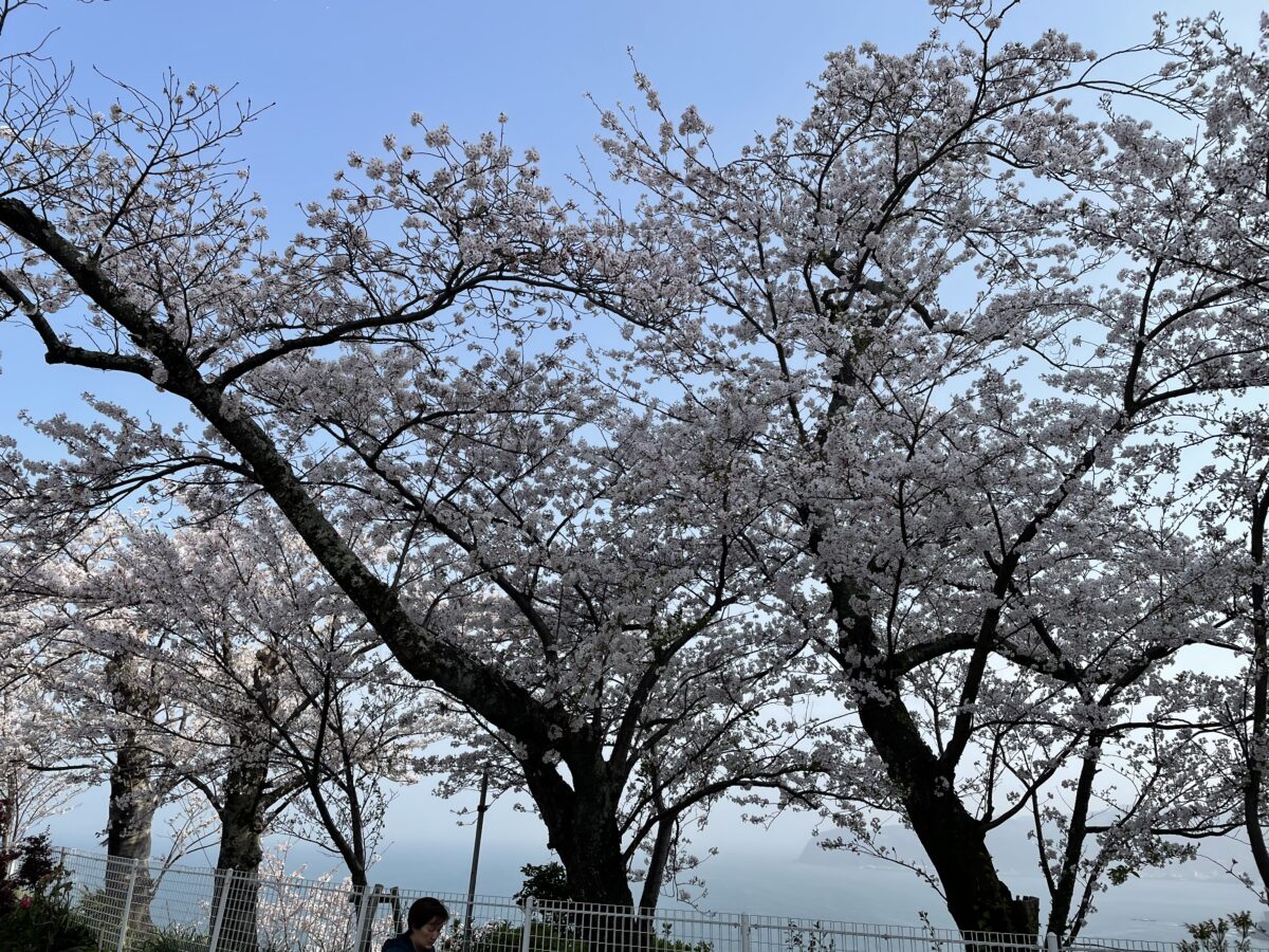 ゴンドラからも桜を見ることが出来ました。ゴンドラの頂上駅には「あいじょう岬展望台」からの眺望は、輝く海と大空が広がる絶景パノラマを楽しむことが出来ます。