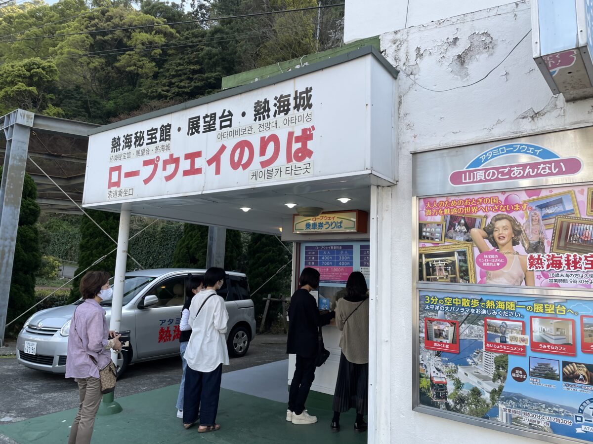 今回、熱海城へは全面ガラス張りのゴンドラで「日本一短い」と言われているアタミロープウェイで向かいました。大人片道400円、往復700円、小人片道300円、往復400円です。アタミロープウェイへのアクセスは、熱海駅より路線バス「後楽園線」があるのですが、現在大幅な減便となっており、今回筆者も熱海駅からバスに乗ることができませんでした。しかし、朗報です!アタミロープウェイ・熱海秘宝館ご利用の際は、熱海駅から「熱海ベイリゾート後楽園」の無料シャトルバスが利用が可能だそうです。熱海駅から出発する便は9時30分から日中は毎時0分、30分に熱海駅前マクドナルド付近から出発していますので、ぜひ参考になさってください。(2021年4月現在)