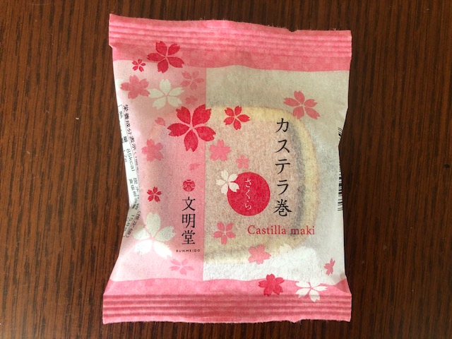 さくらバージョンは、真ん中はピンクの生地ですが両側にあんこが忍ばせてある模様。中の桜風味のカステラは、さくらカステラとほぼ同じですが、巻いてある茶色い生地が少し固め。甘さがさくらカステラより少し控えめな気がしました。