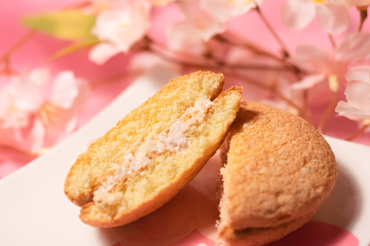 心地よい桜葉の塩味と、豊かな桜の香りが広がるこってりとしたクリームが特徴の焼き菓子。生地は飾り気のない優しい甘さが◎ クリームに練り込まれたホワイトチョコチップの食感がアクセントとなり、ふんわりとした生地との相性は抜群。春の訪れを満喫できる一品です。