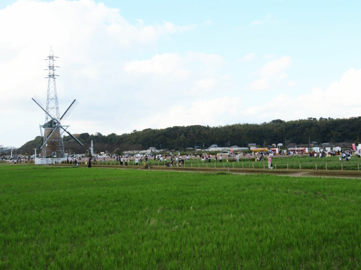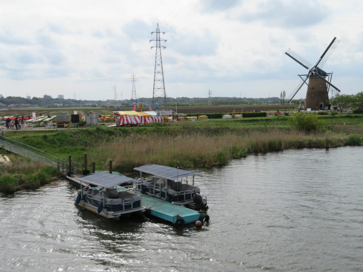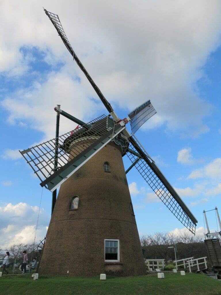 佐倉ふるさと広場は、印旛沼の南岸を整備した公園です。中央にはオランダ風車の「リーフデ」が建てられ、風を受けて羽根を回転させます。