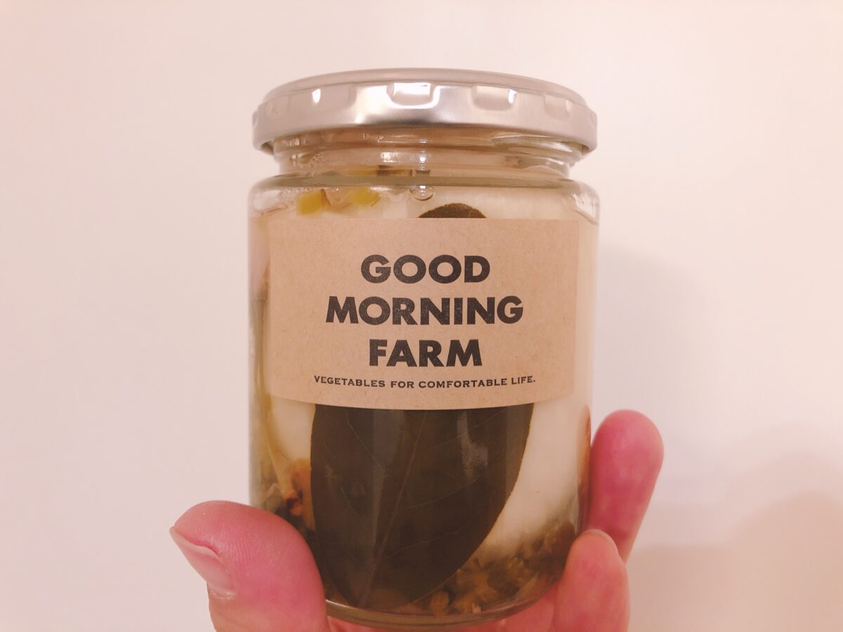 続いてご紹介するのは愛媛県のGOOD MORNING FARMの「桜&かぶピクルス(税込1300円 )」。昔、一世を風靡した「ジャーサラダ」のように、透明のビンに美しく野菜やハーブが詰め込まれています。