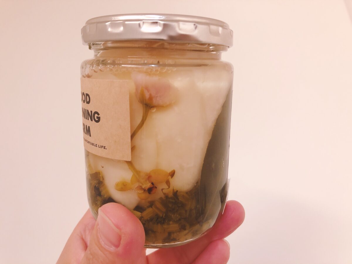 続いてご紹介するのは愛媛県のGOOD MORNING FARMの「桜&かぶピクルス(税込1300円 )」。昔、一世を風靡した「ジャーサラダ」のように、透明のビンに美しく野菜やハーブが詰め込まれています。