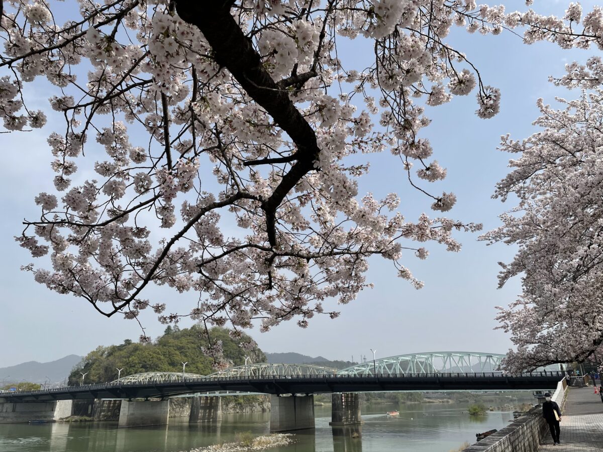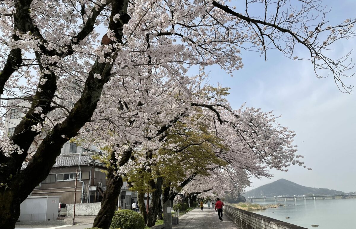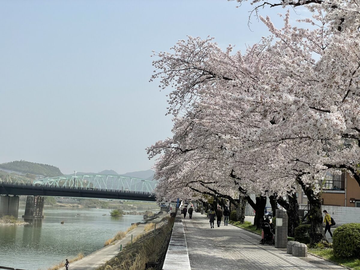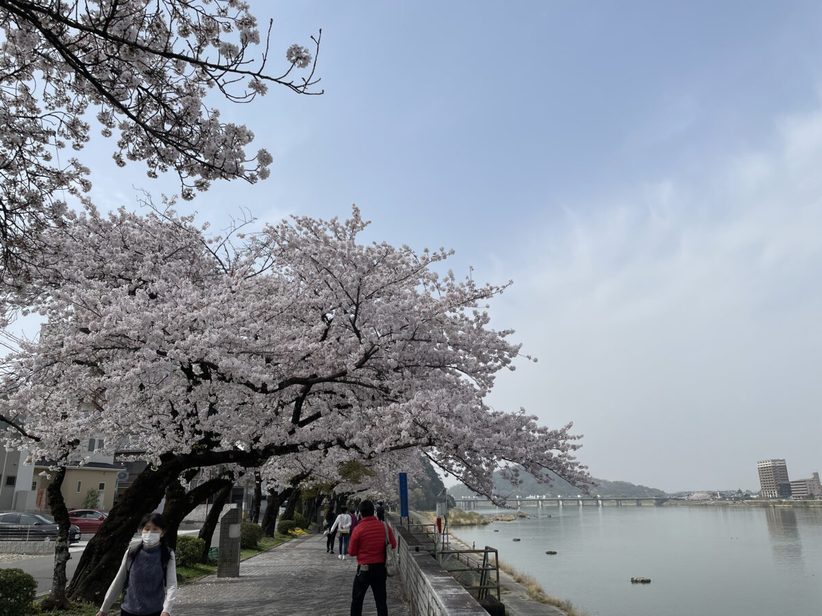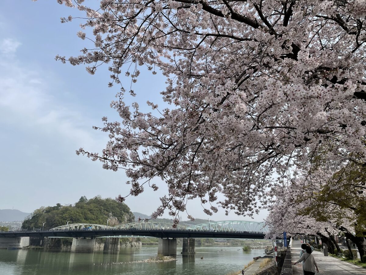 犬山遊園駅は、木曽川沿いに一番近い駅で、徒歩2分ほどで、川沿いの遊歩道となっていて、この時期は桜並木を楽しむことが出来ます。