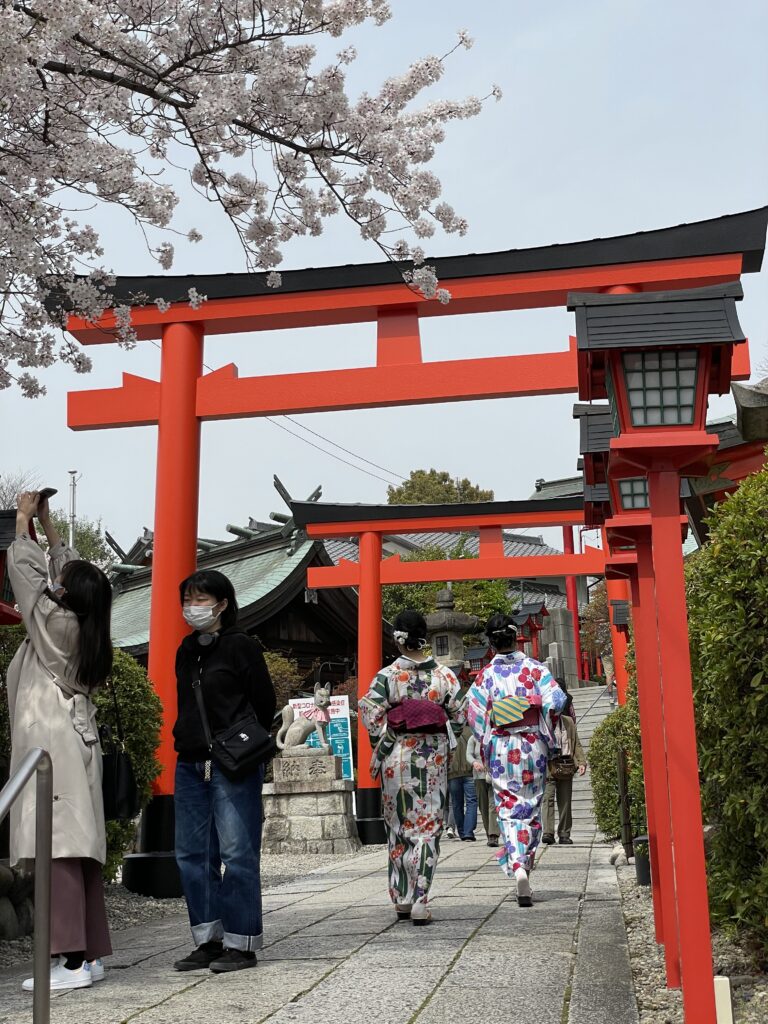 犬山城のふもとには、「三行稲荷神社」も鎮座。縁結びにご利益があると若い女性に人気を集めていました。着物で参拝されている方も多く、とても華やかな雰囲気でした。