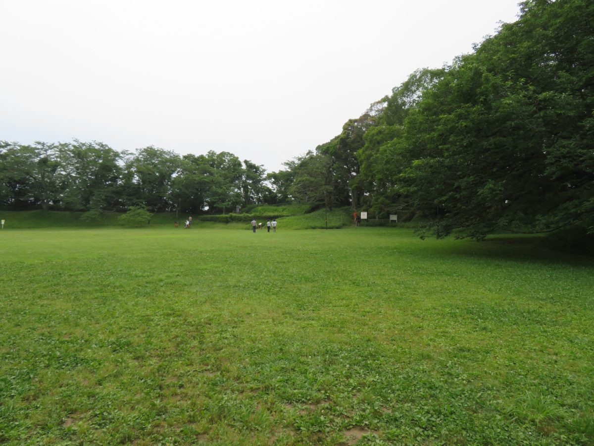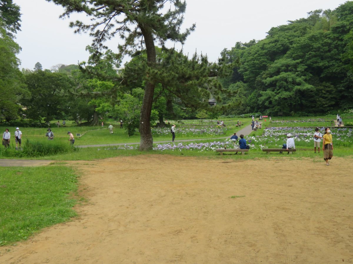 東端の入口から本丸跡に向かう園路の左右に広がる菖蒲田