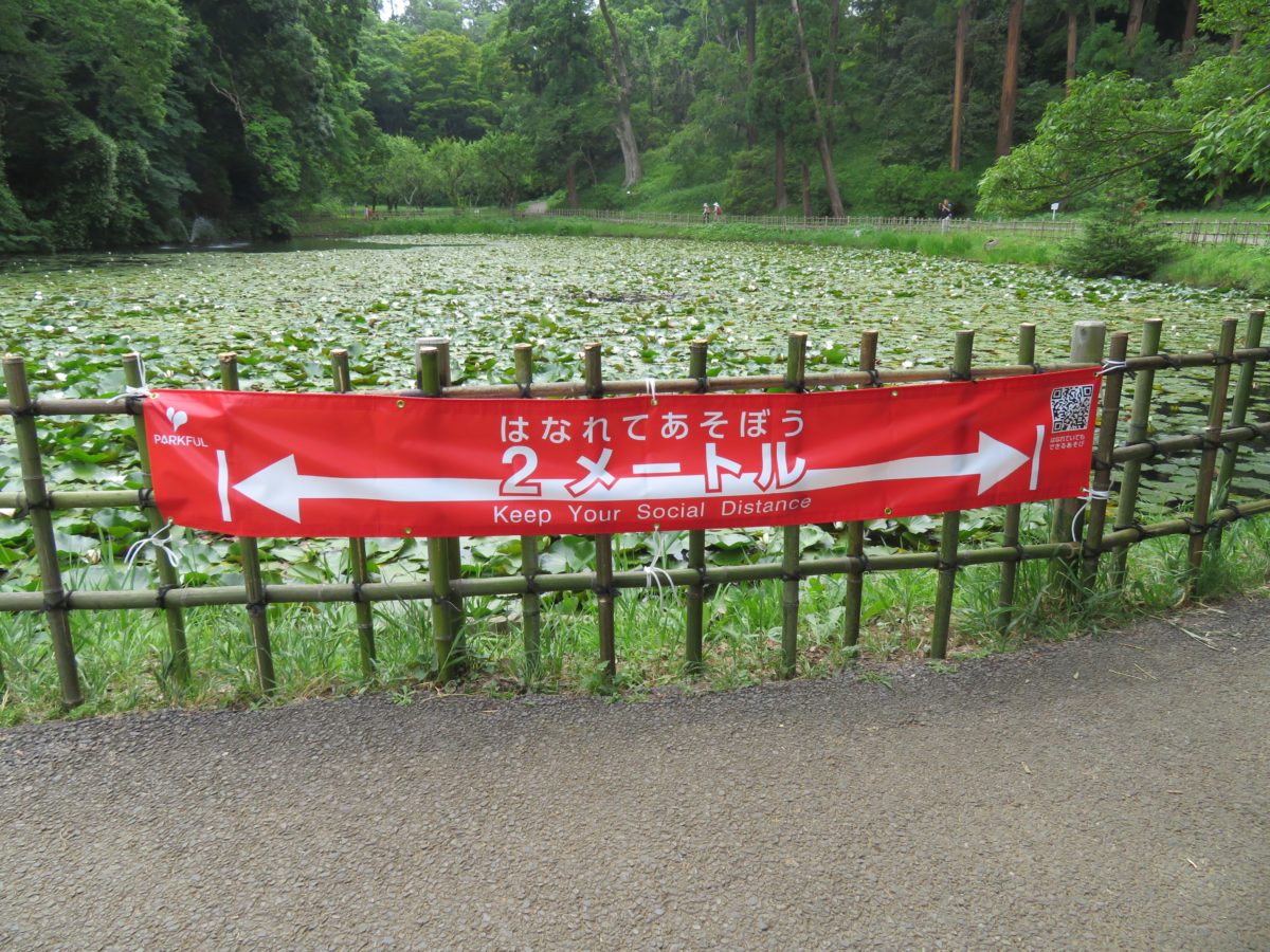 菖蒲田の西端に掲示されるソーシャル・ディスタンス