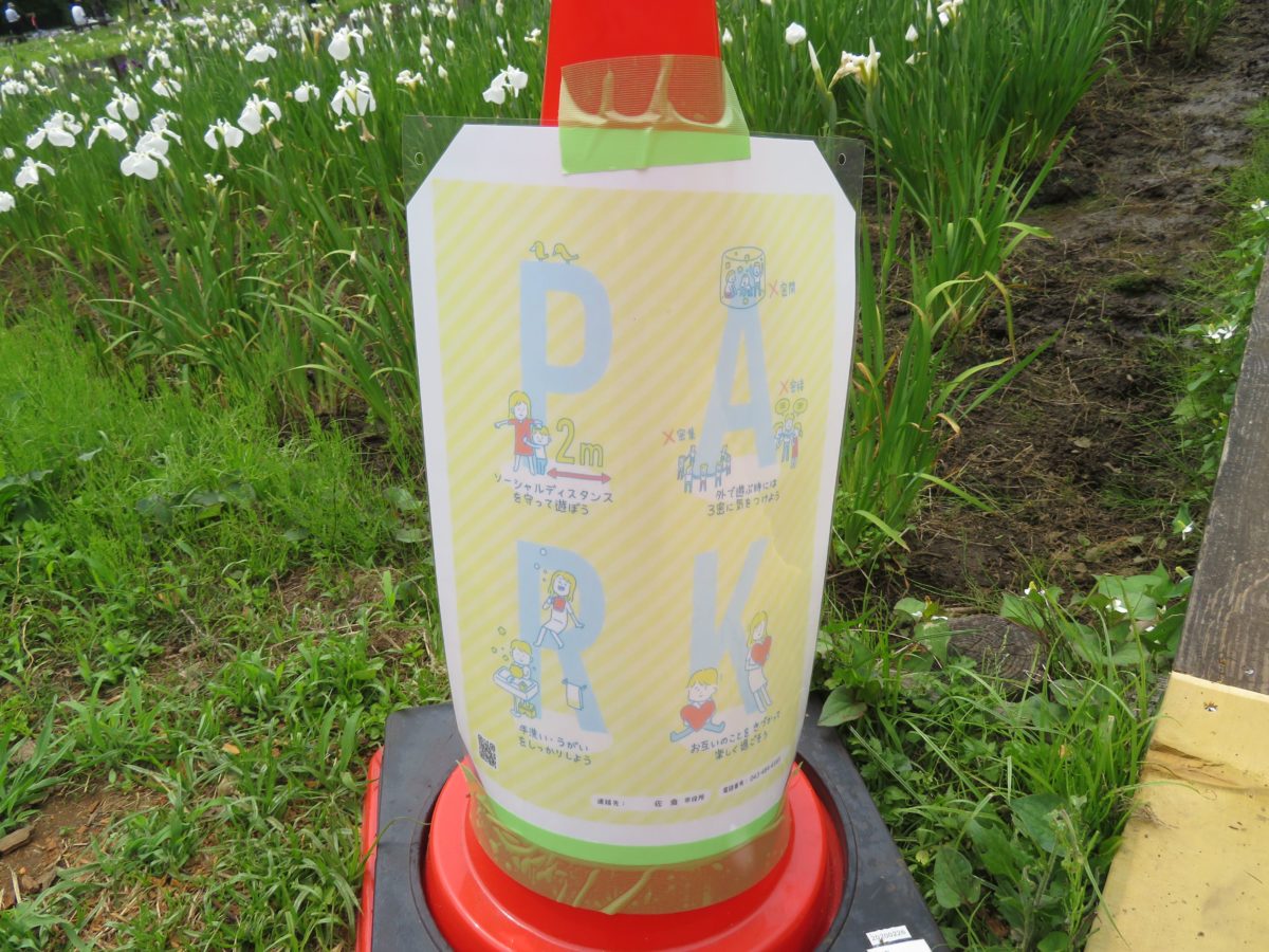 菖蒲田の中に掲示される新型コロナウイルス感染防止のためのガイダンス
