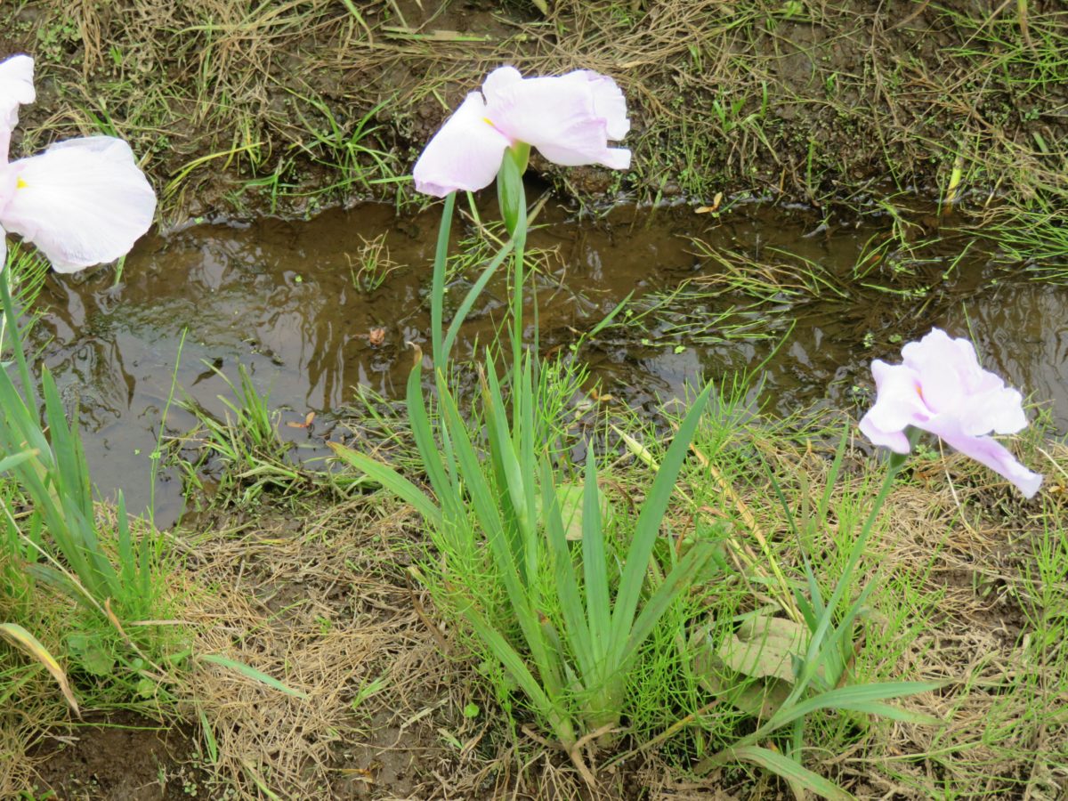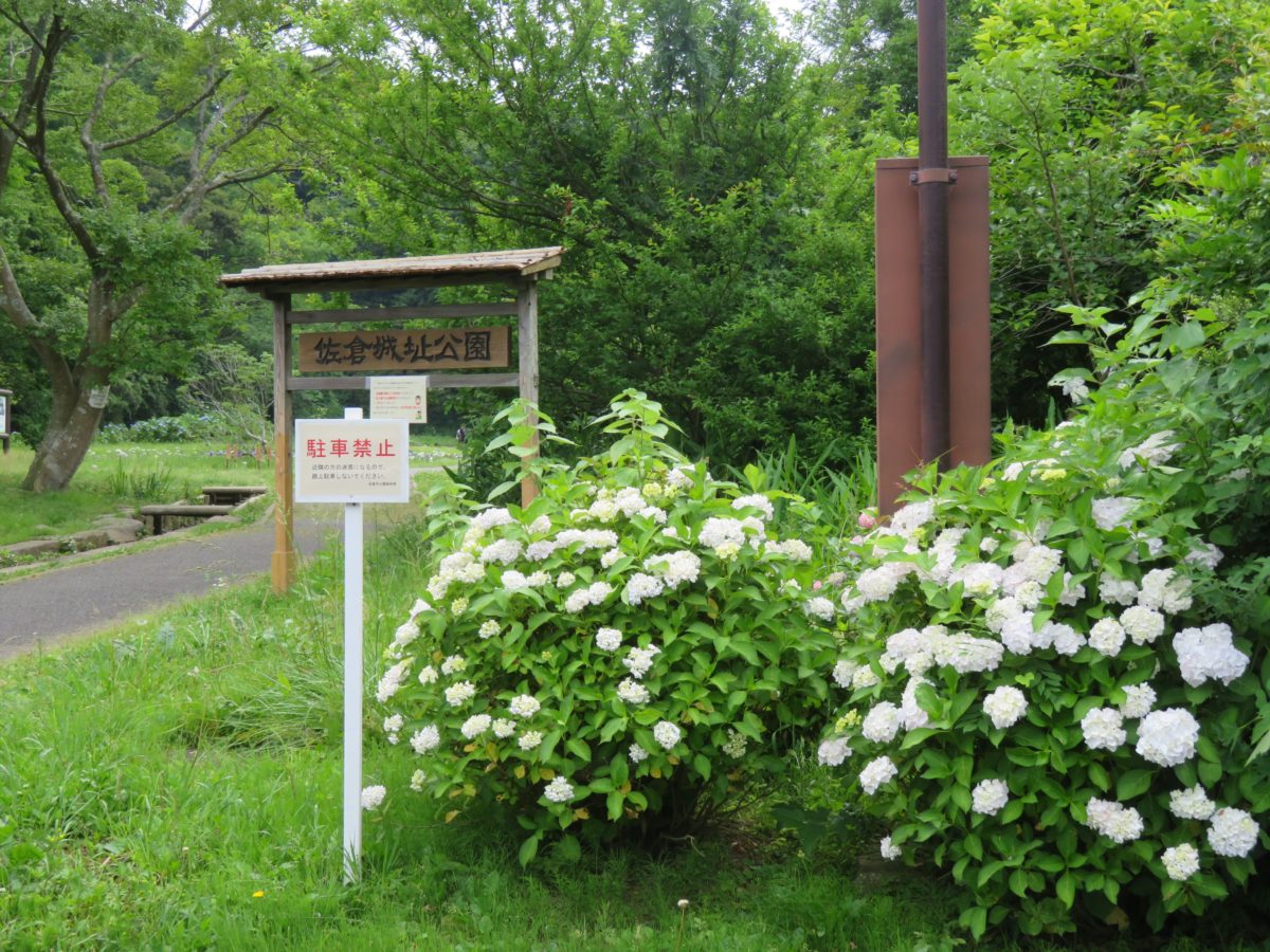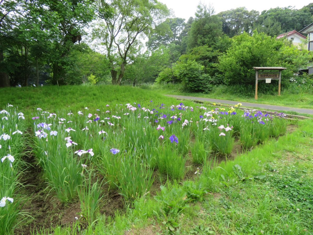 佐倉城址公園の菖蒲田は、公園の東端に整備されています。佐倉城址公園のメインの入口は南東端にありますが、東端にも小さな入口が設けられ、花菖蒲の他にもアジサイの花が出迎えてくれます。