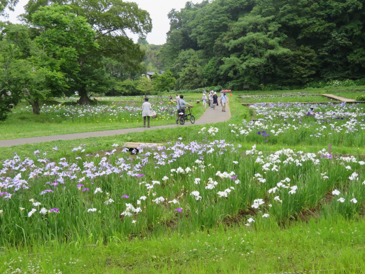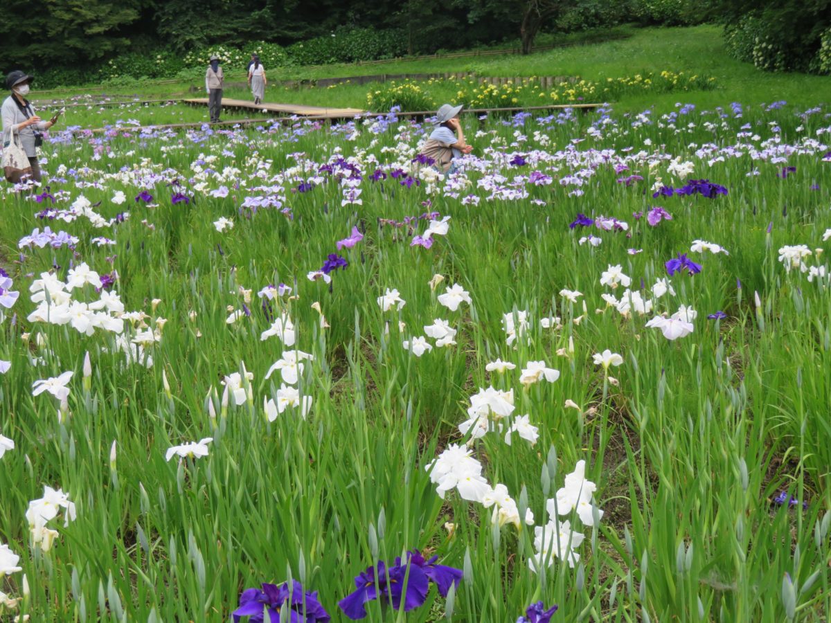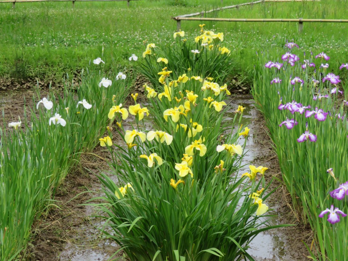 多種の花菖蒲を系統ごとに観察することができる菖蒲田