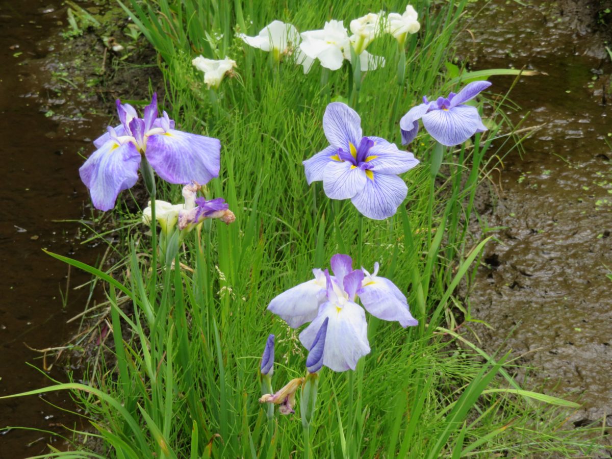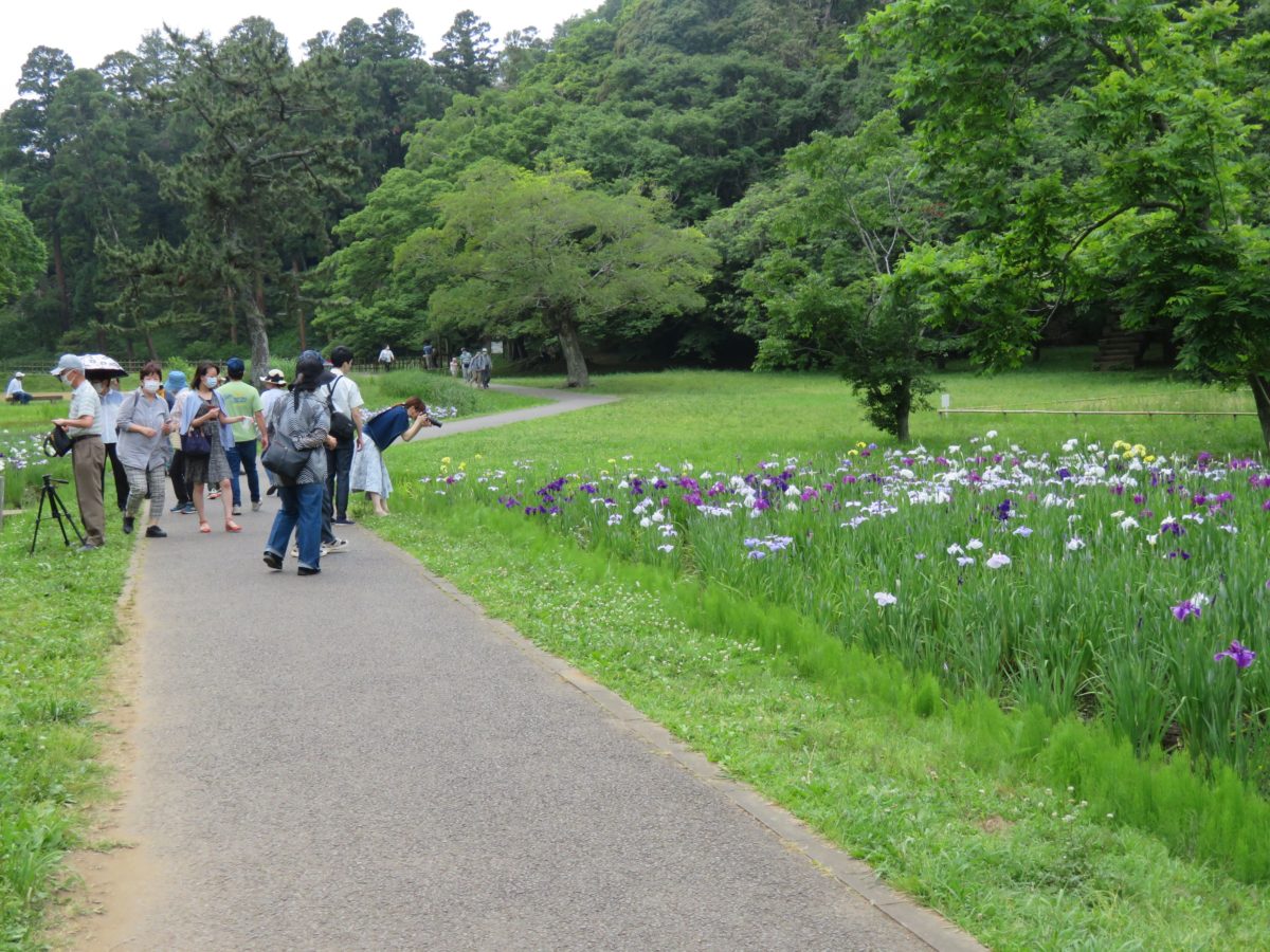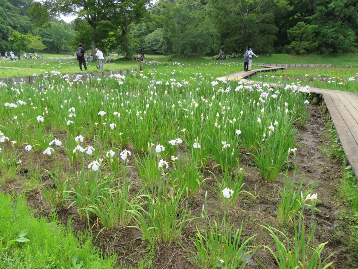 多種の花菖蒲を系統ごとに観察することができる菖蒲田