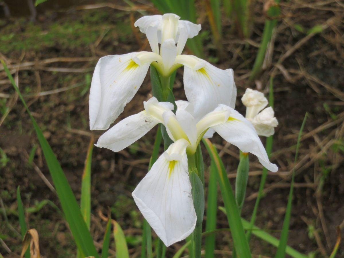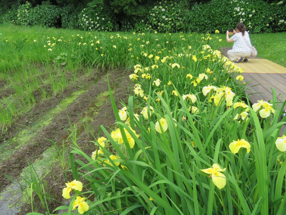 菖蒲田で黄色の花を咲かせる花菖蒲